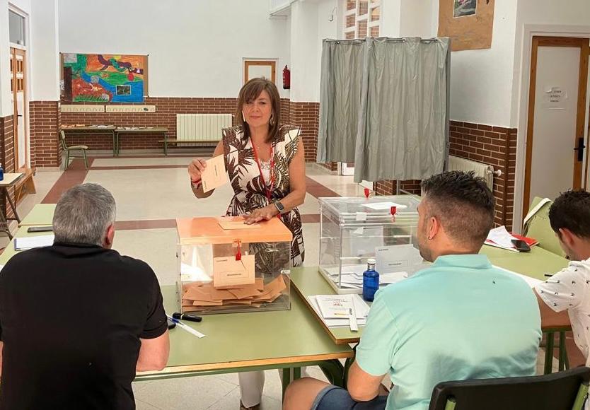 M. Luz Martínez Seijo, candidata y cabeza de lista al Congreso por el PSOE de Palencia, ejerciendo su derecho a voto.