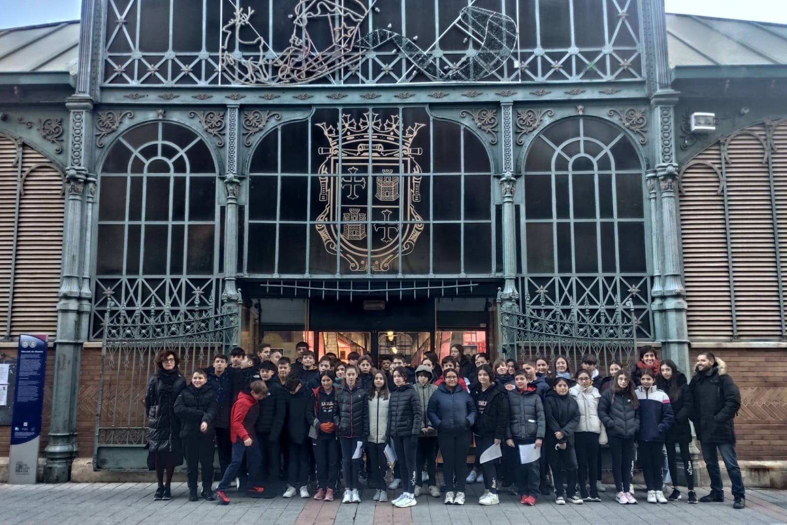 Medio centenar de alumnos del colegio La Salle de Palencia han visitado esta mañana la Plaza de Abastos de la ciudad acompañados por la concejala de Impulso Económico, Judith Castro, y el jefe de estudios de Secundaria, José Manuel López, dentro de la actividad de cierre enmarcada en el proyecto ‘Saborea’, que están llevando a cabo en el centro y, donde los jóvenes han tenido que acercarse al sector de la alimentación desde el punto de vista histórico.