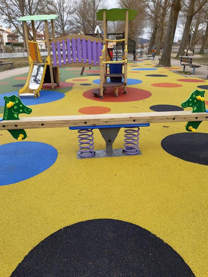 Se ha instalado un suelo de seguridad con caucho y se han adquirido un multijuego compacto, un balancín safari y un columpio doble plano. Además, se repararon algunos elementos como la rampa de la tirolina e instalaron mesas de picnic y aparcabis.