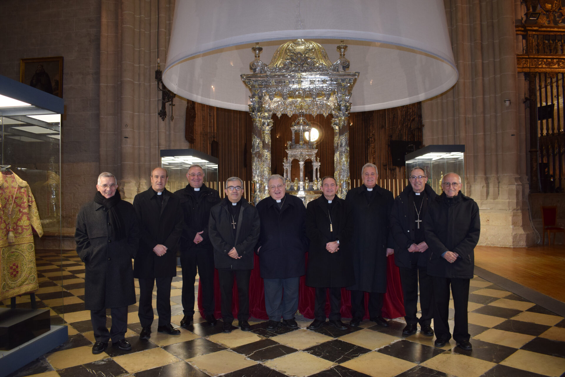 Los obispos de la Comunidad visitaron hoy la exposición ‘Renacer’ en la Catedral de Palencia, que se enmarca en los actos del VII Centenario de la seo, los cuales realizaron un recorrido guiado por uno de los responsables del diseño expositivo, el arquitecto Ignacio Vela.