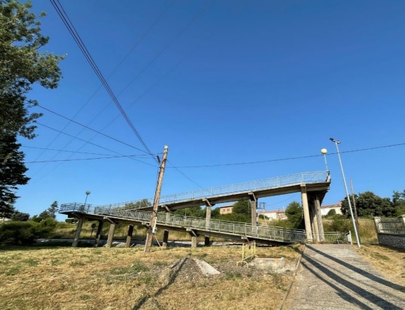 El paso del tiempo y las inclemencias meteorológicas invernales pasan factura a la pasarela que comunica Las Rozas de Guardo con el núcleo urbanos. El deterioro de la misma obliga a intervenir. Intervención que acabe con el peligro para el tránsito de viandantes debido al mal estado de las barandillas y suelo. A esto debe sumarse el hecho de que una de las preformas de hormigón que forman el piso se encuentre desplazada 12 centímetros en su plano horizontal a causa de un accidente de tráfico.