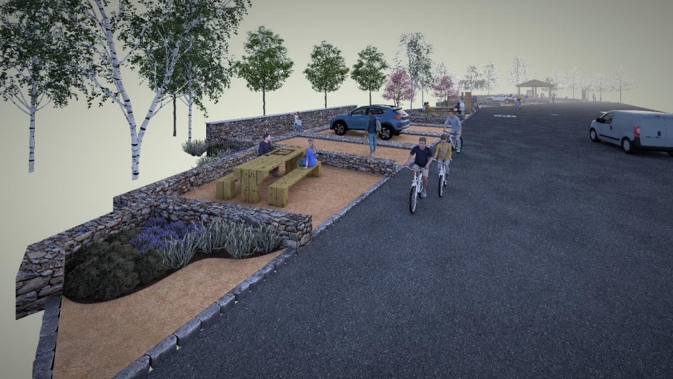 Estos puntos de encuentro estarán provistos “de zonas habilitadas para la recepción de vehículos, aparcamiento e inicio de las rutas, tanto para usuarios de la zona como para visitantes y turistas de fuera”. Para ello, contarán con una zona estancial con paneles informativos y una pérgola cubierta. Plazas de aparcamiento para 3-6 plazas de vehículos “más grandes de lo normal para poder recibir vehículos con bicicletas y facilitar su carga y descarga”.