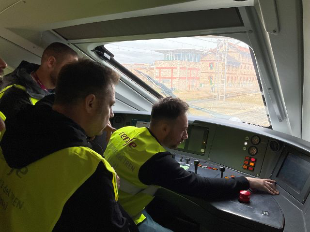 Los cursos de formación de maquinistas, que incluyen teoría y práctica, se imparten en León de forma paulatina desde el 11 de febrero, en las aulas de las dependencias de Renfe en la ciudad y en una unidad de tren S-106 recién llegada a León, con la que los alumnos han podido tener hoy su primer acercamiento a este nuevo material rodante. En este tren, los maquinistas en fase de habilitación también realizarán recorridos atravesando la Variante de Pajares, además de circular por otros trayectos en la línea de AV como parte de su formación práctica.