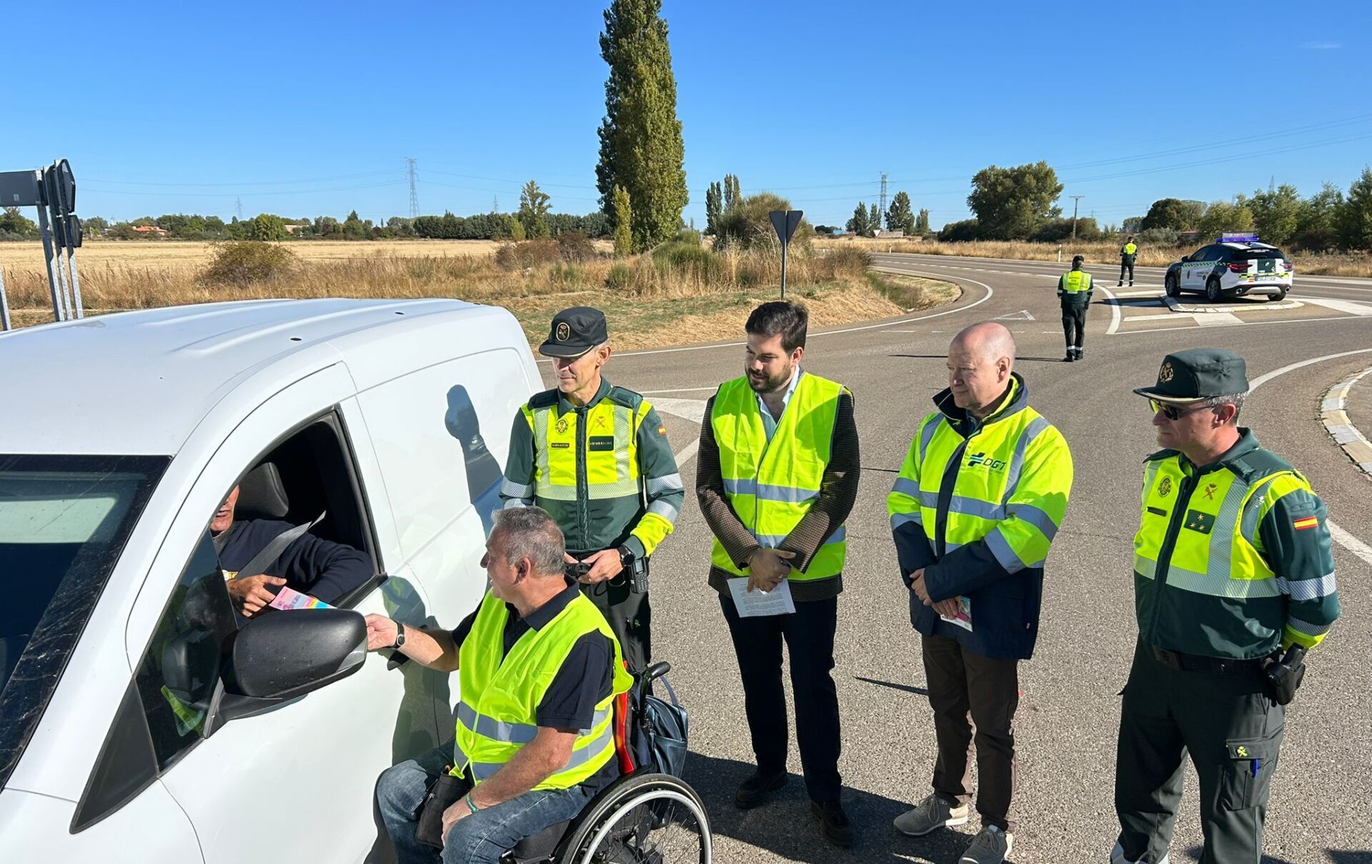 El subdelegado del Gobierno en Palencia, Eduardo Santiago, junto con el jefe Provincial de Tráfico, Fernando Alonso, y el capitán de la Guardia Civil de Tráfico han presentado en la carretera CL-615 (Palencia-Guardo) la campaña de control de distracciones que está impulsando la Dirección General de Tráfico a nivel nacional durante toda esta semana.
