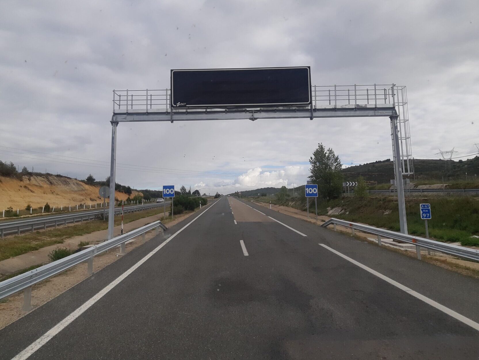 Esa situación se va a revertir, en parte, en la A-67 palentina, donde únicamente existían estos paneles en las dos bocas de entrada de los túneles de Nogales de Pisuerga.