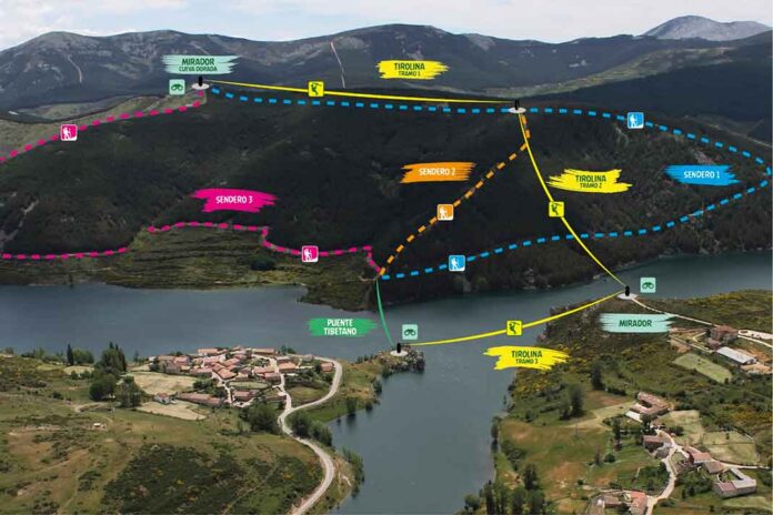 Desde estos dos miradores de altura, se quieren poner en acción dos tirolinas que pueden superar los 2 km de recorrido cada una, con unos descensos vertiginosos por los aledaños de los bosques, de los embalses y con destino a los miradores de base.