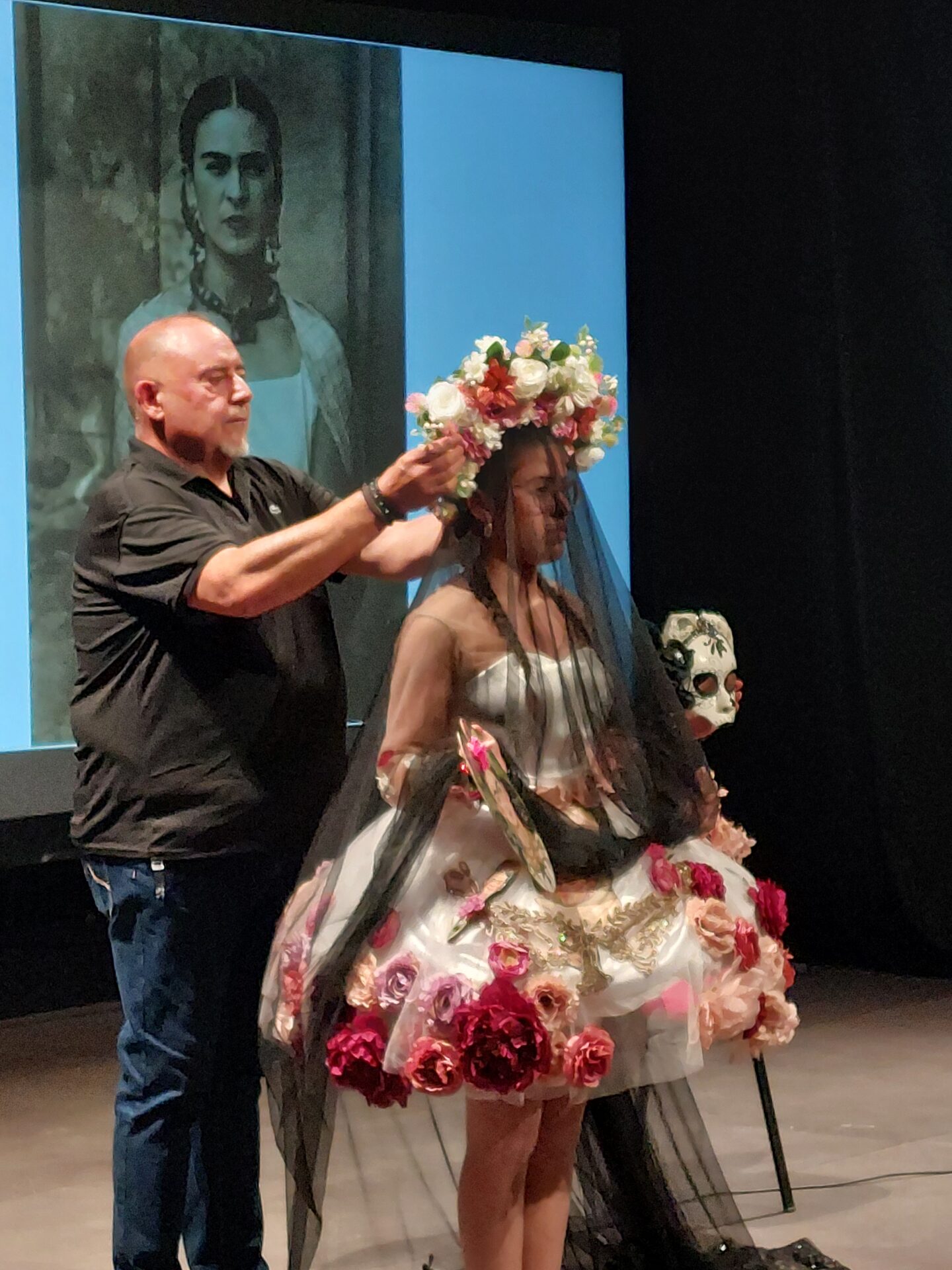 Comenzaba con el vestido-cuadro Nuestros Mayores: Inspirado en “La persistencia de la memoria”, de Salvador Dalí, simboliza la asistencia a las personas mayores y la importancia de la memoria y el tiempo en sus vidas.