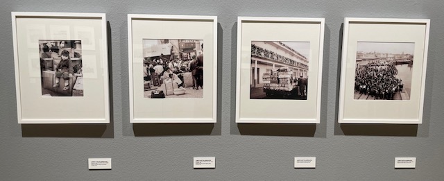 No faltan imágenes simpáticas, como el capitán de un barco con tres abuelas, un coro despidiendo a los emigrantes, marineros de la Armada ajenos al problema social y un grupo de religiosas esperando a sus hermanas. Pero también hay fotografías duras, como unos niños que perdieron el barco… y el futuro; una niña que no oculta su tristeza esperando entre maletas a su madre; un niño ejerciendo de madre de otros tres hermanos pequeños, estos más alegres e ingenuos, ignorantes de su futuro, y aquel más triste siendo consciente de la responsabilidad que tiene y del incierto destino que les espera a todos.