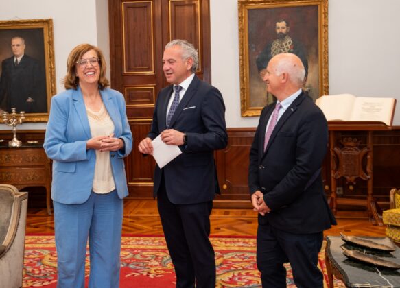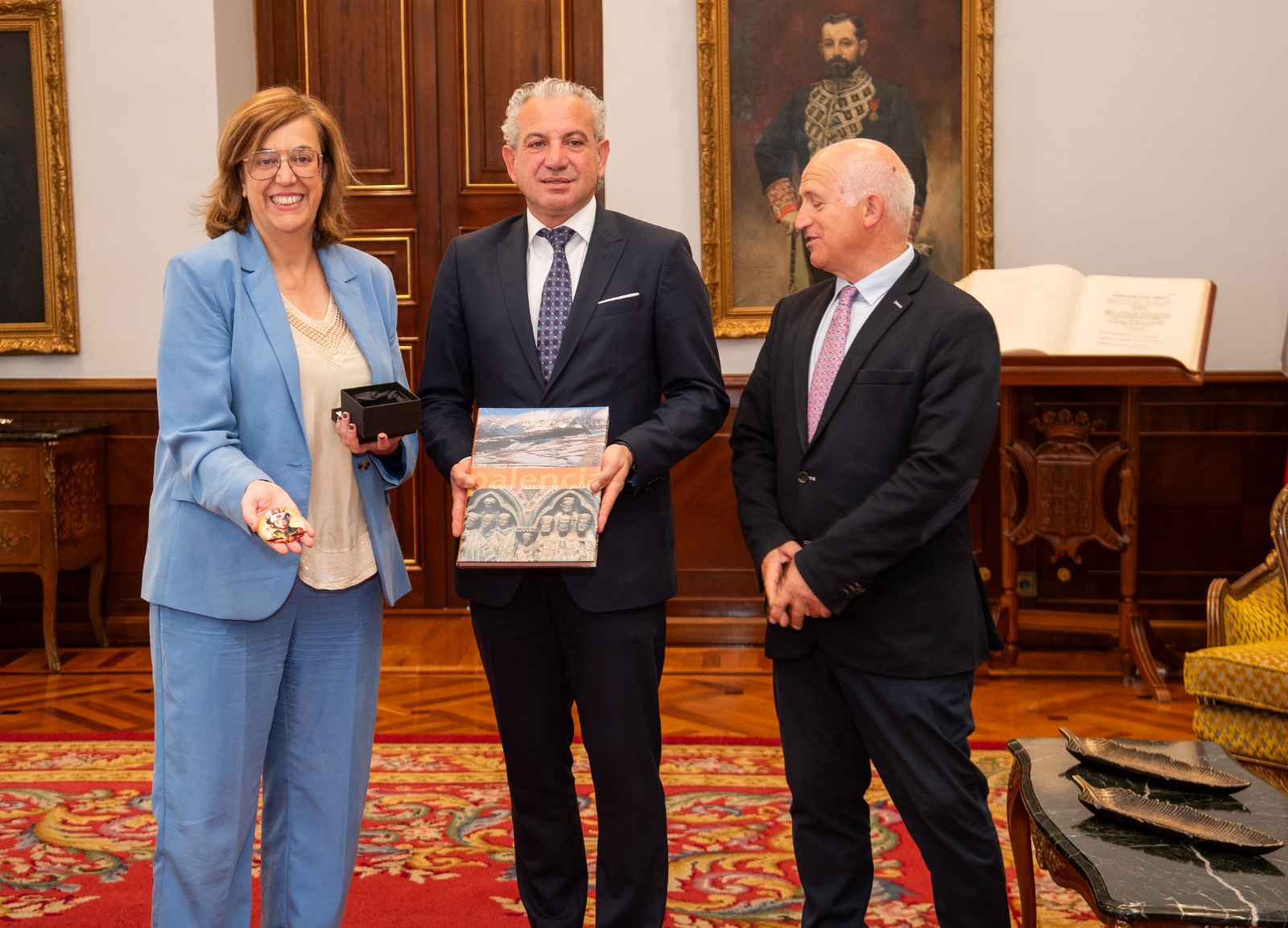 Su primera parada por las instituciones palentinas fue el Ayuntamiento de la ciudad a primera hora de la mañana. Allí se reunió con la alcaldesa de la ciudad, Miriam Andrés, y con el equipo de Gobierno, abordando distintos asuntos de interés para la ciudad. Además, la edil palentina le ha hecho entrega de un libro de Victorio Macho como recuerdo.