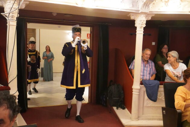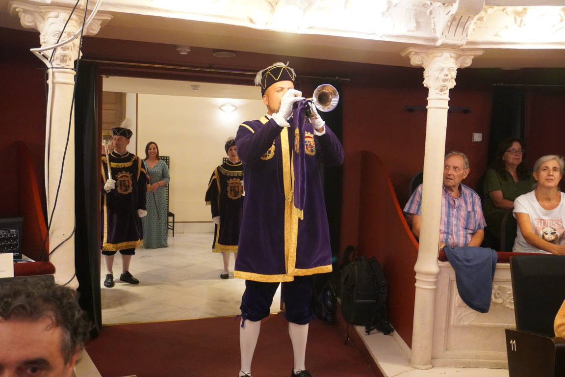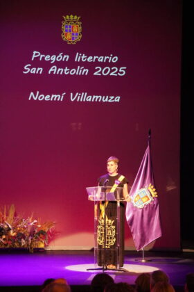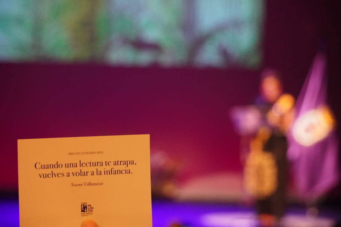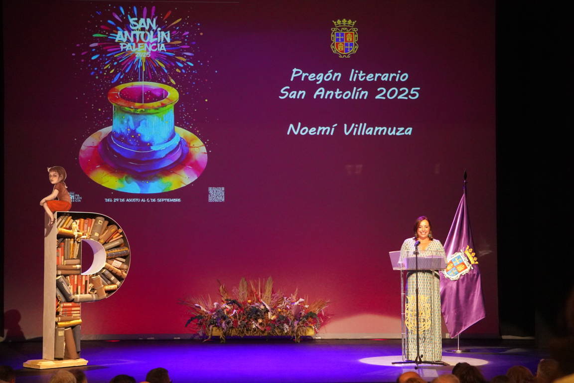 La ilustradora palentina Noemí Villamuza fue la encargada de pronunciar este jueves el Pregón Literario de San Antolín 2025 en el Teatro Principal. La ceremonia arrancó con la entrada solemne de la alcaldesa Miriam Andrés, la pregonera y el concejal de Cultura, Turismo y Fiestas, Francisco Fernández, acompañados por los maceros y el toque de clarín con las primera notas del himno a Palencia.