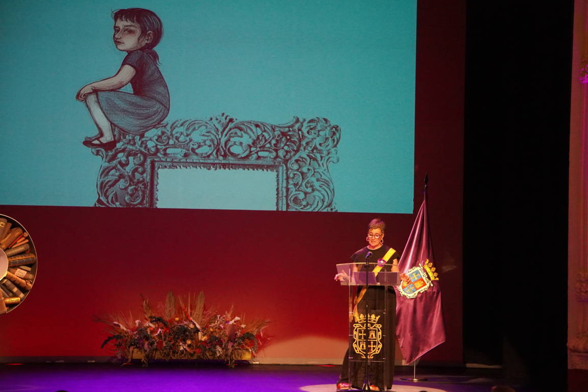 Villamuza abrió su intervención recordando que “casi todo fue primero un dibujo” y agradeciendo a su entorno y a las autoridades. Asimismo, la ilustradora quiso dedicar unas palabras a los pueblos afectados recientemente por los incendios: “Ojalá estar todos unidos para hacer fuerza y cuidar mejor el tesoro que es nuestra naturaleza. Que no se nos olvide, que lo que tenemos, lo que nos nutre y lo que nos conforma viene del campo”, señaló.
