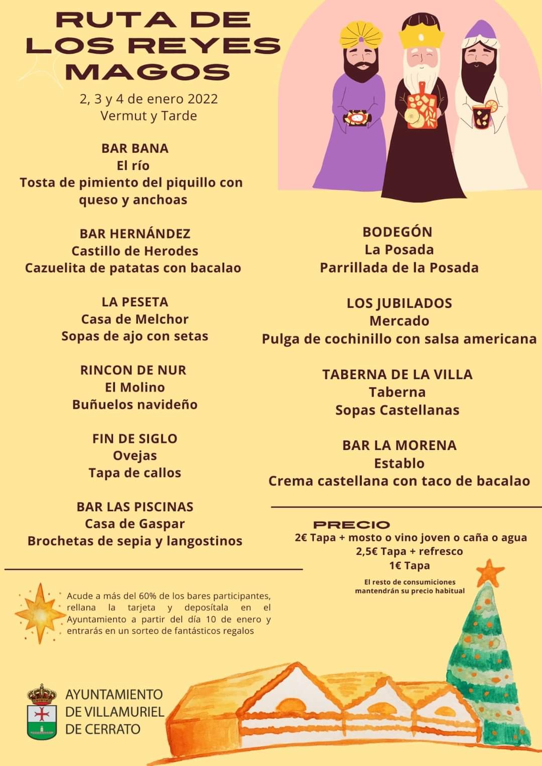 De 13:00 a 23:00 h Jornadas gastronómicas navideñas por los bares de Villamuriel “La ruta de los Reyes Magos”