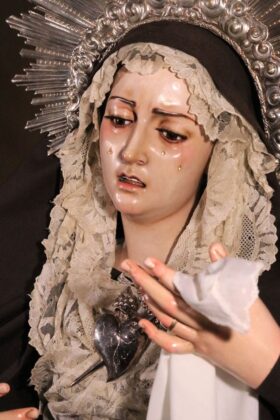 “La dolorosa muestra claramente una inspiración a las imágenes del maestro Montes de Oca, concepto dramático que responde al modelo de Virgen madura. El rostro se contrae en un patético sollozo, inclinándose ligeramente hacia el lado izquierdo; los ojos almendrados y entornados, surgen bajo un ceño extraordinariamente fruncido que hace bajar la mirada: los labios, entreabiertos dibujan un rictus de agudo dolor”, indican desde la exposición que se celebrará en Torremolinos del 25 al 27 de octubre.