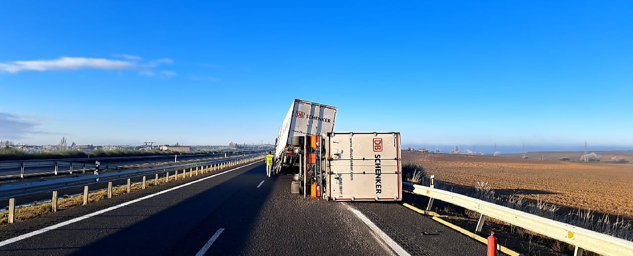 La subdelegación del Gobierno en Palencia ha informado de una nueva incidencia vial, en la que, a causa del vuelvo de un camión, se ha tenido que cortar el carril derecho de la autovía A-231, en sentido León, a la altura del km 90’300.