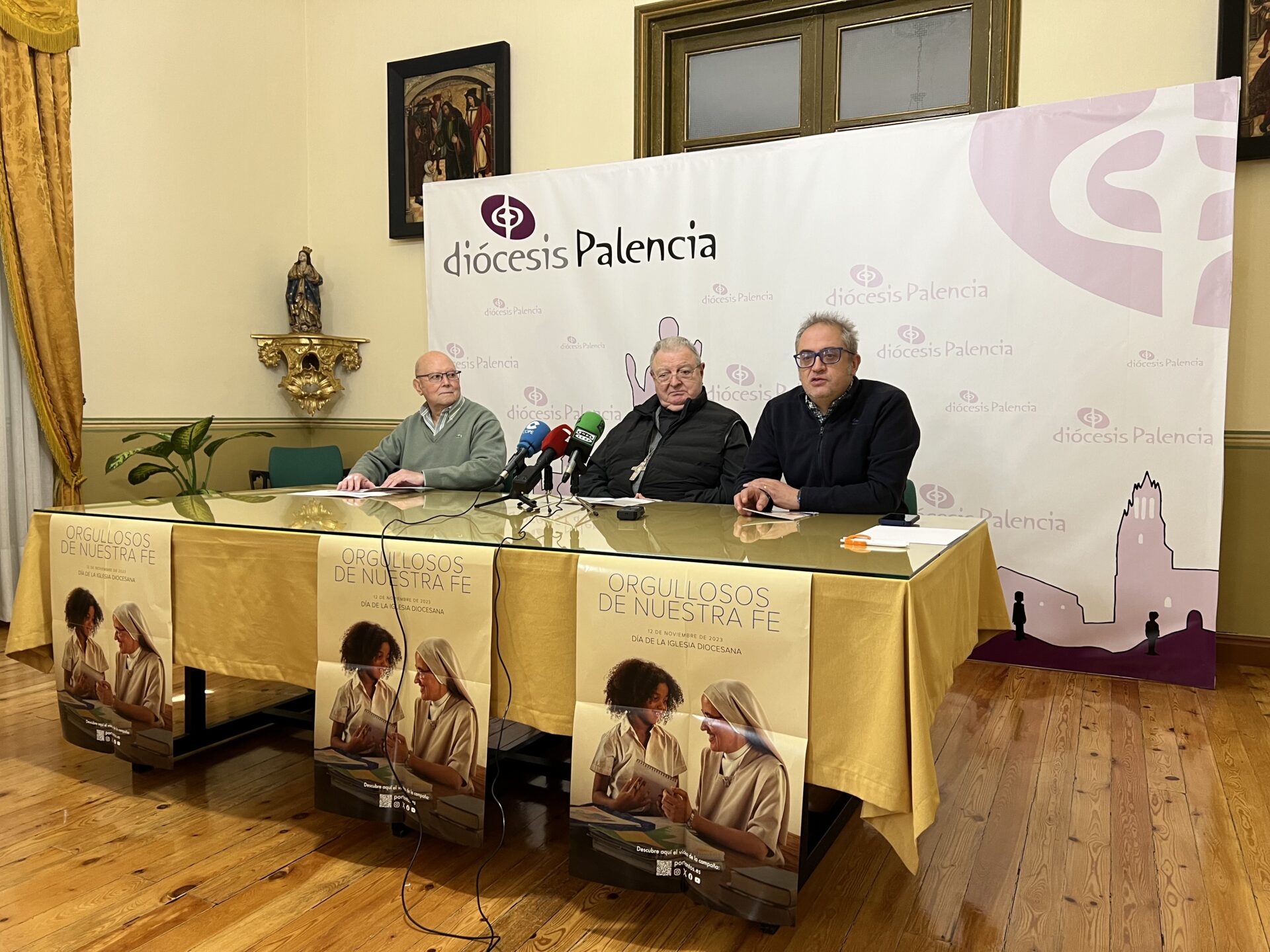 De izqda a dcha: Tirso Castrilo, ecónomo diocesano; MOns. Manuel Herrero, administrador apostólico de la Diócesis de Palencia y Txomin Pérez, director de comunicación de la Diócesis de Palencia