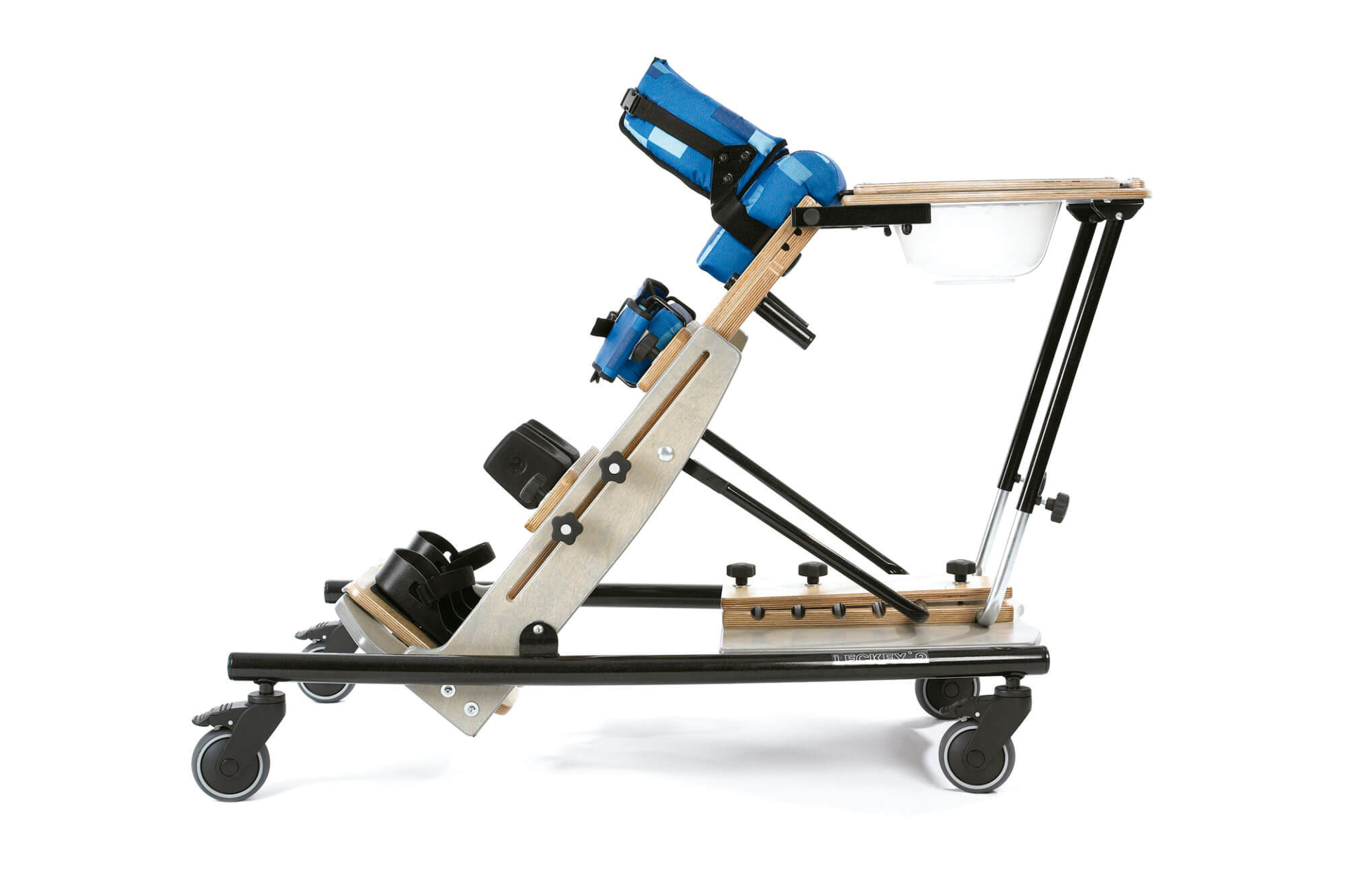 La manera más eficaz de trabajar la bipedestación cuando esta no es posible, es la utilización de los bipedestadores, como el modelo Pronestander de Leckey.