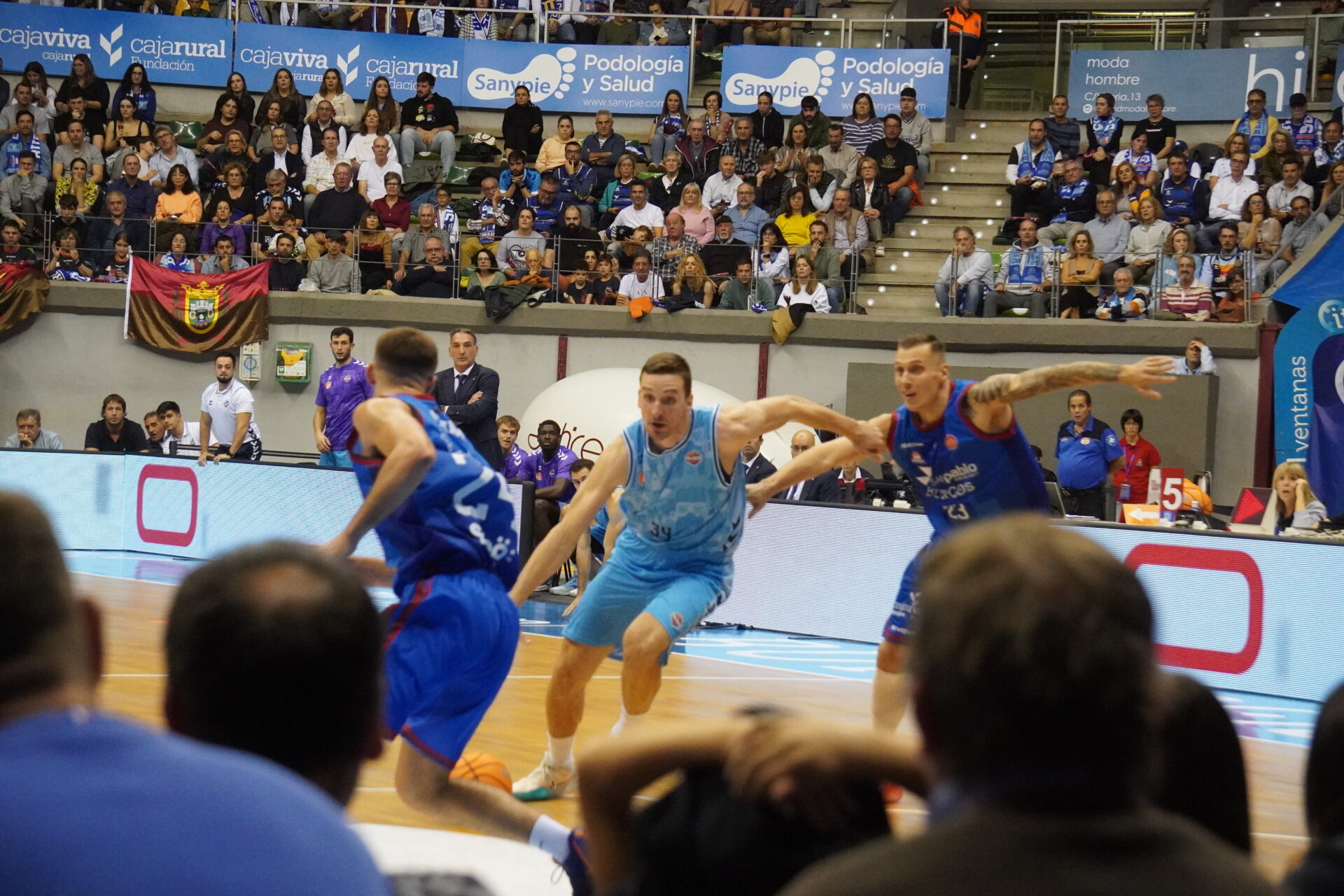 Empezaban a fallar los burgaleses tambien sus tiros. Palencia encontraba el camino por dentro, Krutwig ya sumaba 16 y el conjunto morado se colocaba a uno. 68-67 con un triple de Oroz.