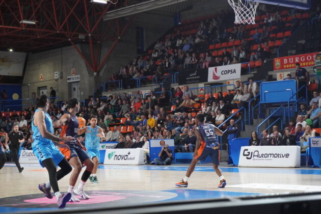 Enderezó el rumbo el Palencia. Buscándoles las puertas de atrás al Burgos. La rigidez de los árbitros con las defensas palentinas y la levedad con las de los locales calentaron el encuentro y acercaron al Burgos a solo cuatro puntos a falta de cuatro minutos. Eso y algunas pérdidas no forzadas de los morados. Corría el tiempo… pero no se avanzaba en el marcador. En ninguno, por fortuna.