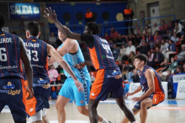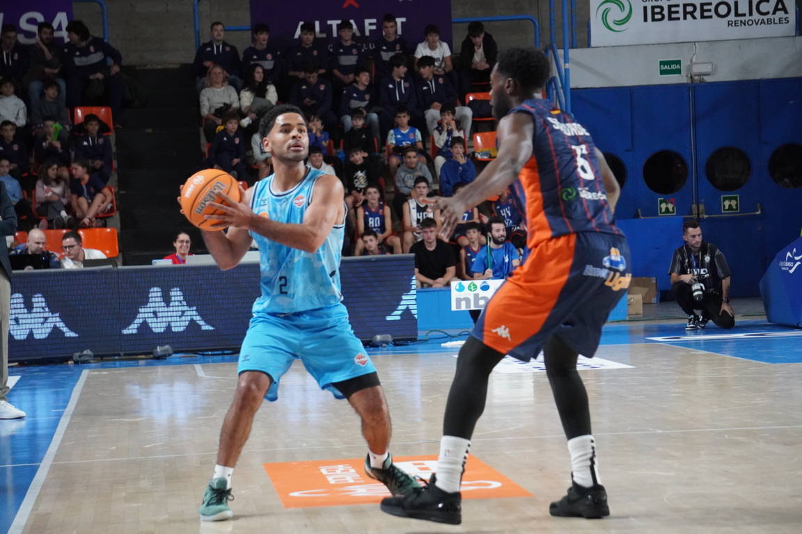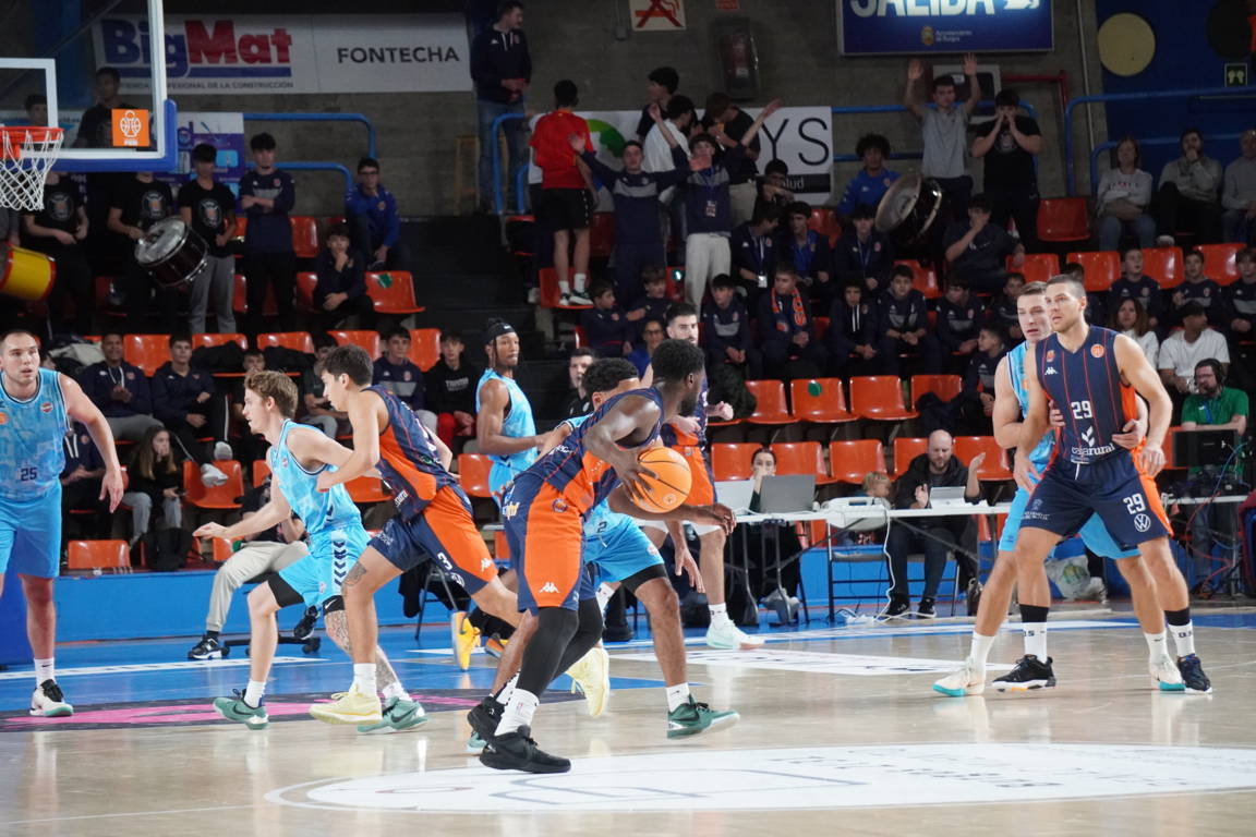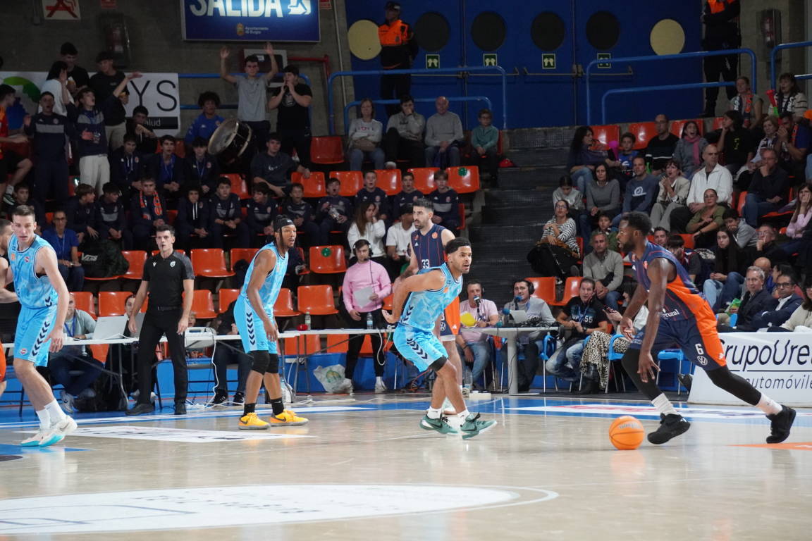 Más allá de las cosas del directo en una inauguración, al Plantío llegó el Palencia a estrenar camiseta, en este caso la azul, con un cinco formado por Wintering, Borg, Kamba, Vaulet y Krutwig.