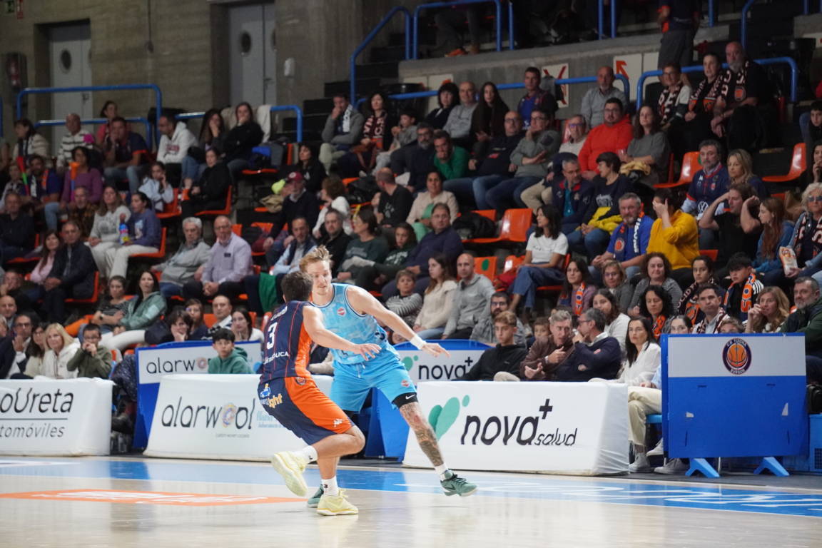 Comenzó a buscar el Palencia el juego interior, y no con los grandes. Con Vaulet, que recibía con ventaja de Borg bajo el aro. El argentino era ya el máximo anotador de los palentinos con 13 puntos. Pero los de Guil iban a remolque. Uno abajo a falta de cuatro minutos.