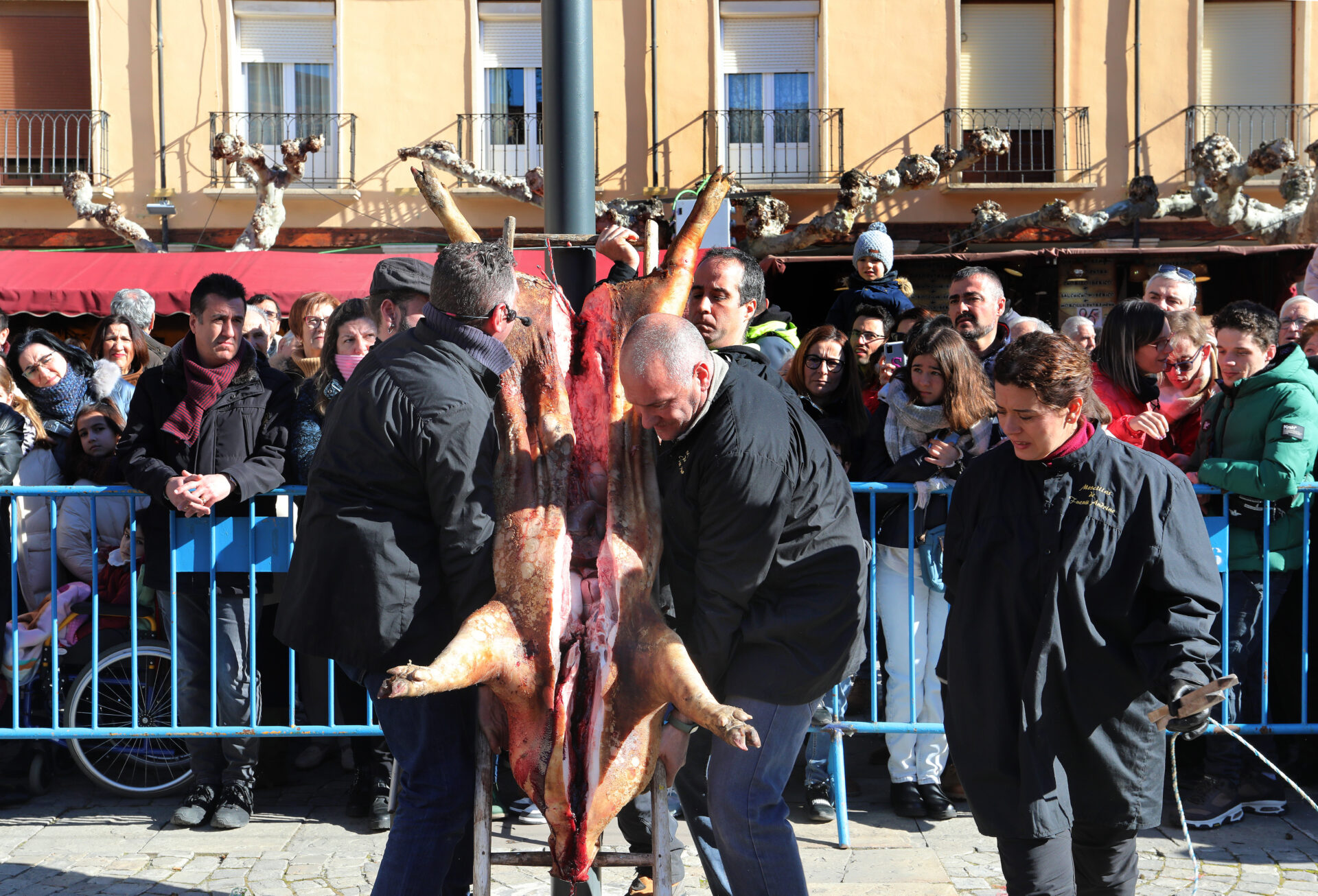Tras ello, la programación festiva se trasladó a la plaza Mayor con la tradicional demostración de las labores del despiece del cerdo que corrió a cargo de Morcillas de Fuenteandrino.