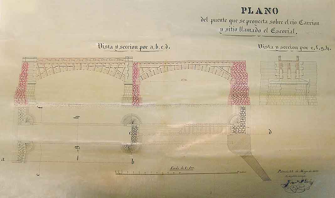 Una curiosidad que se observa en el plano es la referencia a que el puente se ubicaba en el sitio conocido como El Escorial. Una referencia que sólo aparece en las actas en los años del Sexenio, entre 1868 y 1870, para denominar a esa zona, aunque desconocemos el porqué de este nombre.