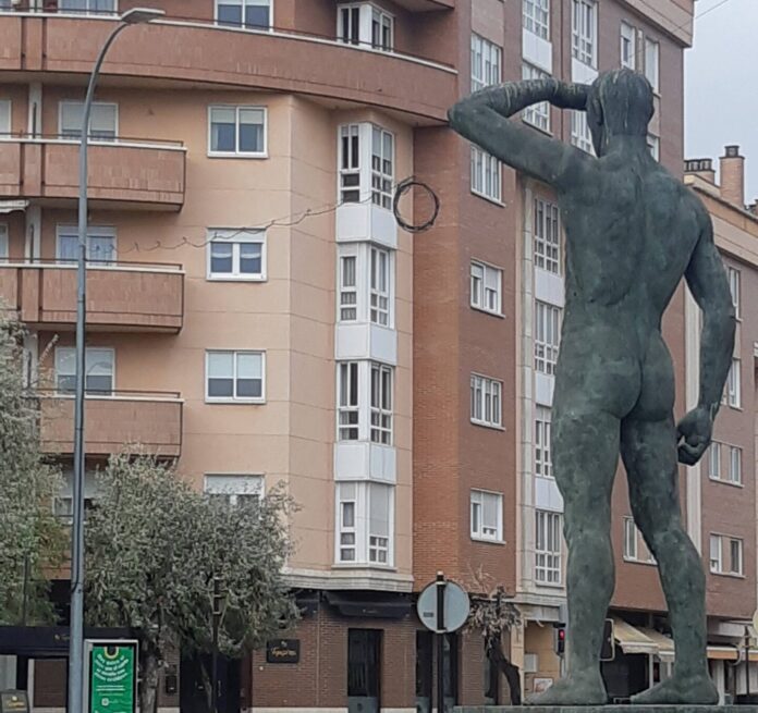 También en varias glorietas llamadas a albergar elementos luminosos, se pueden ver los cables que llevarán la electricidad hasta el centro. Como en la del Campesino Ibérico (avenida de Asturias con Simón Nieto), donde la estatua parece otear el manojo de cables.