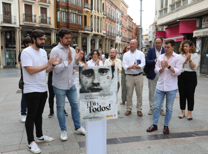 Nuevas Generaciones del PP de Palencia rindió esta mañana un homenaje al concejal de Ermua, Miguel Ángel Blanco, asesinado a manos de la banda terrorista ETA el 13 de julio de 1997. Cuando apenas quedan unos días para la celebración del vigesimoséptimo aniversario de su muerte, llevaron a cabo un acto en la calle Mayor de Palencia como una manera de “mantener vivo su legado”.