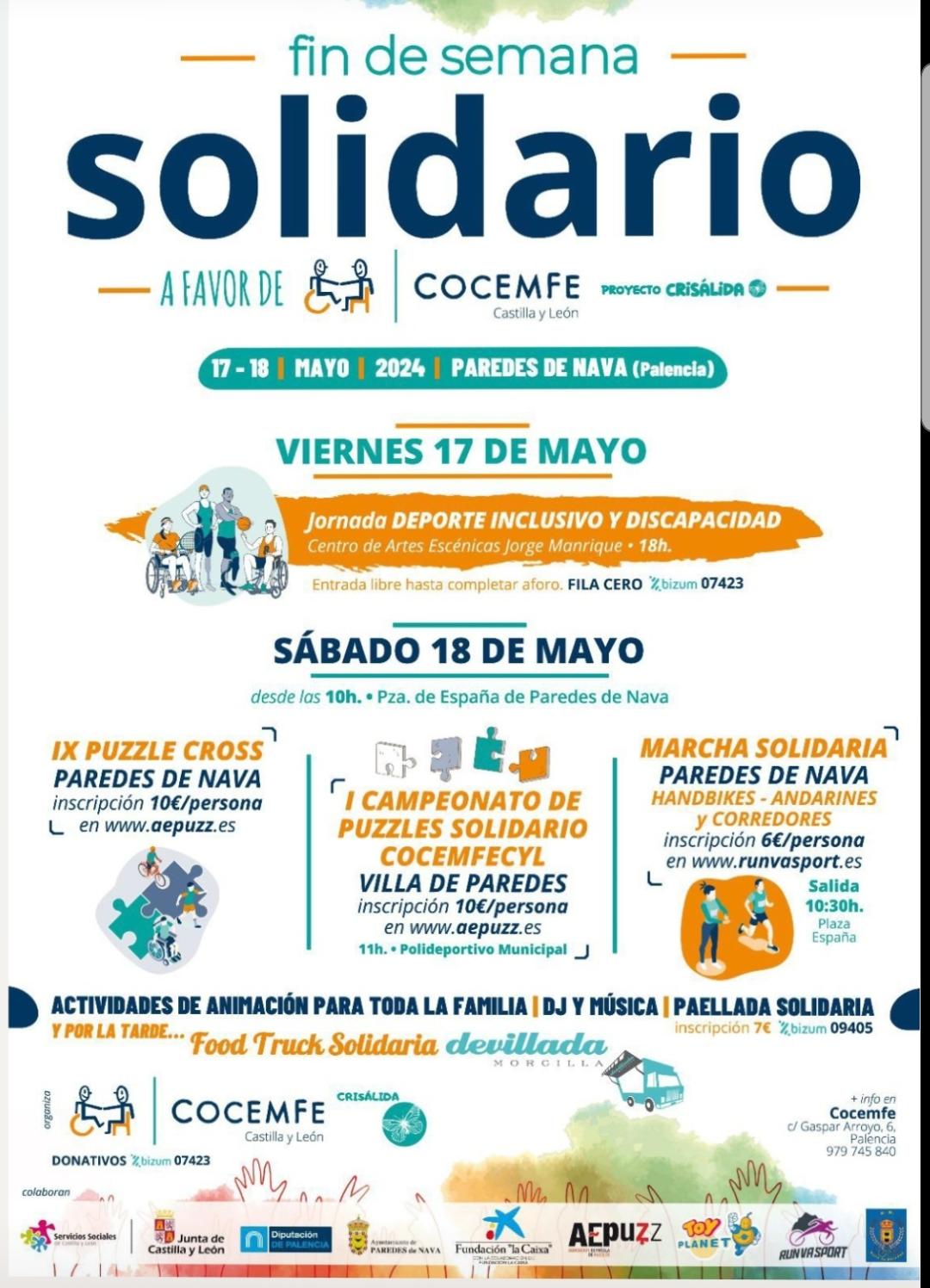 Los días 17 y 18 de mayo Paredes de Nava celebrará un Fin de Semana Solidario a favor de COCEMFE Castilla y León.