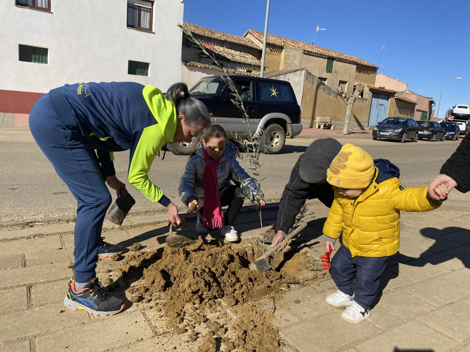 Una actividad en la que han participado, durante la primera jornada, todos los alumnos del CEIP Alonso Berruguete de la localidad paredeña, quienes plantaron un total de 40 árboles de olivos y almendros.