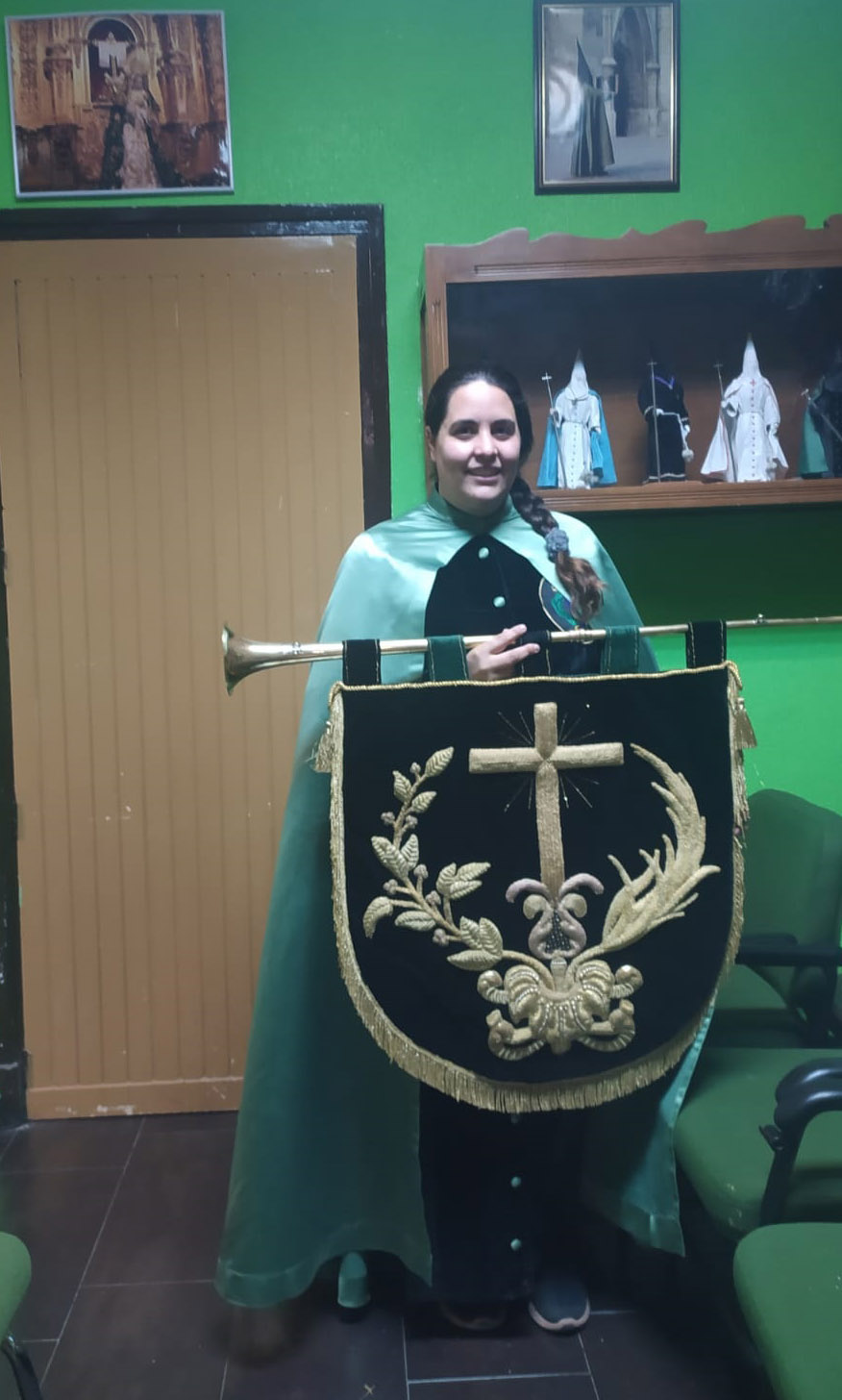 A veces por algún motivo no han podido salir los trompeteros, nosotros en la Vera Cruz teníamos tres y fue disminuyendo el número y algún miembro de la Banda los suplía. Pero hay un momento que también hay que intentar buscar trompeteros oficiales. En mi caso yo tengo la tradición desde pequeña porque mi padre era uno de ellos en la Cofradía y yo siempre he querido seguir sus pasos. Cuando me dieron la oportunidad de hacer lo mismo que hizo mi padre no me lo pensé mucho.