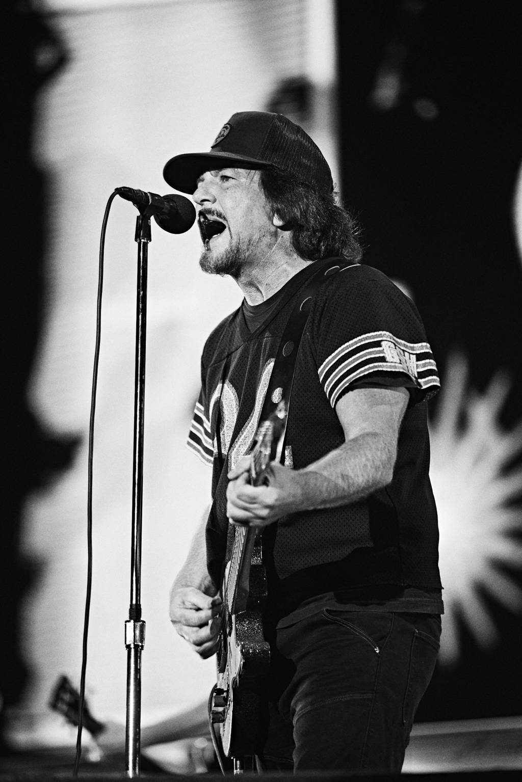 Un Eddie Vedder con muchas ganas de conectar con los allà congregados en la capital de España, sacó al escenario unos apuntes en castellano de lo que querÃa contarnos para que todos pudiéramos entenderle. Sin duda un gran esfuerzo que valoró mucho el respetable que abarrotaba el escenario para ver una banda compacta, sobrada de calidad y arte, con un virtuosismo único en los instrumentos y un set list cargado de grandes himnos generacionales para los nacidos en los 70 y 80.