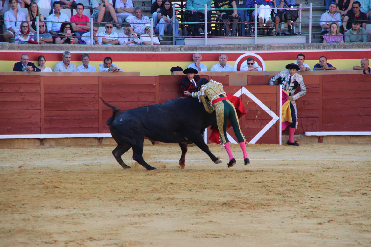 Menos pudo hacer con el segundo de su lote, que hizo gala desde la salida de su falta de fuerzas. Un despropósito en la lidia fue el tercio de varas, de pelea inexistente en el caballo, como un despropósito fue el tercio de banderillas. Ya en la muleta, mostró embestidas dispares, aunque por lo general fueron buenas, yendo largo, aunque siempre mejor por el pitón derecho. Rápido se vino a menos el de La Quinta, que apenas aguantaba series largas. Un bonito cierre con derechazos sin ayuda levantó al público, antes de dos pinchazos, uno bajo y otro alto, y una estocada baja que le privaron de cualquier opción de premio.