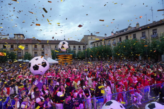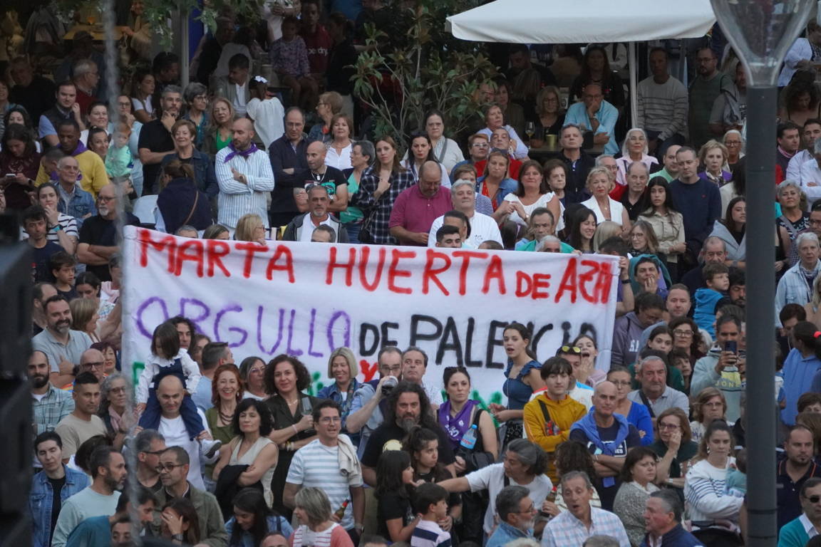 Y ahí comenzó la rutina arbitral aunque más que colegiada, Marta Huerta de Aza parecía una entrenadora en una arenga. “No tenemos nada que envidiar al resto del mundo. Somos únicos y tenemos que estar orgullosos de nuestras raíces, de nuestra tierra, de nuestros antepasados, de ser de Palencia con P”. Algo que hizo en primera persona acordándose de su pueblo, Población de Campos (“ha venido todo el pueblo”, afirmó); de su Peña, La Lopartía de Población, de “la sensación de pertenencia, de crear una familia, aunque no sea de sangre, pero cuyo corazón late al mismo ritmo”, al pertenecer a una agrupación festiva, a las que, congregadas en la Plaza Mayor pidió que botaran como una afición en la grada.
