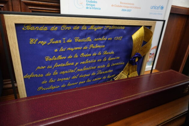 Como agradecimiento, desde el Ayuntamiento de Palencia se le hizo entrega a Marta Huerta de la miniatura de la historia de la Banda de Oro de la Mujer Palentina y de un Cristo con un silbato de Oro.
