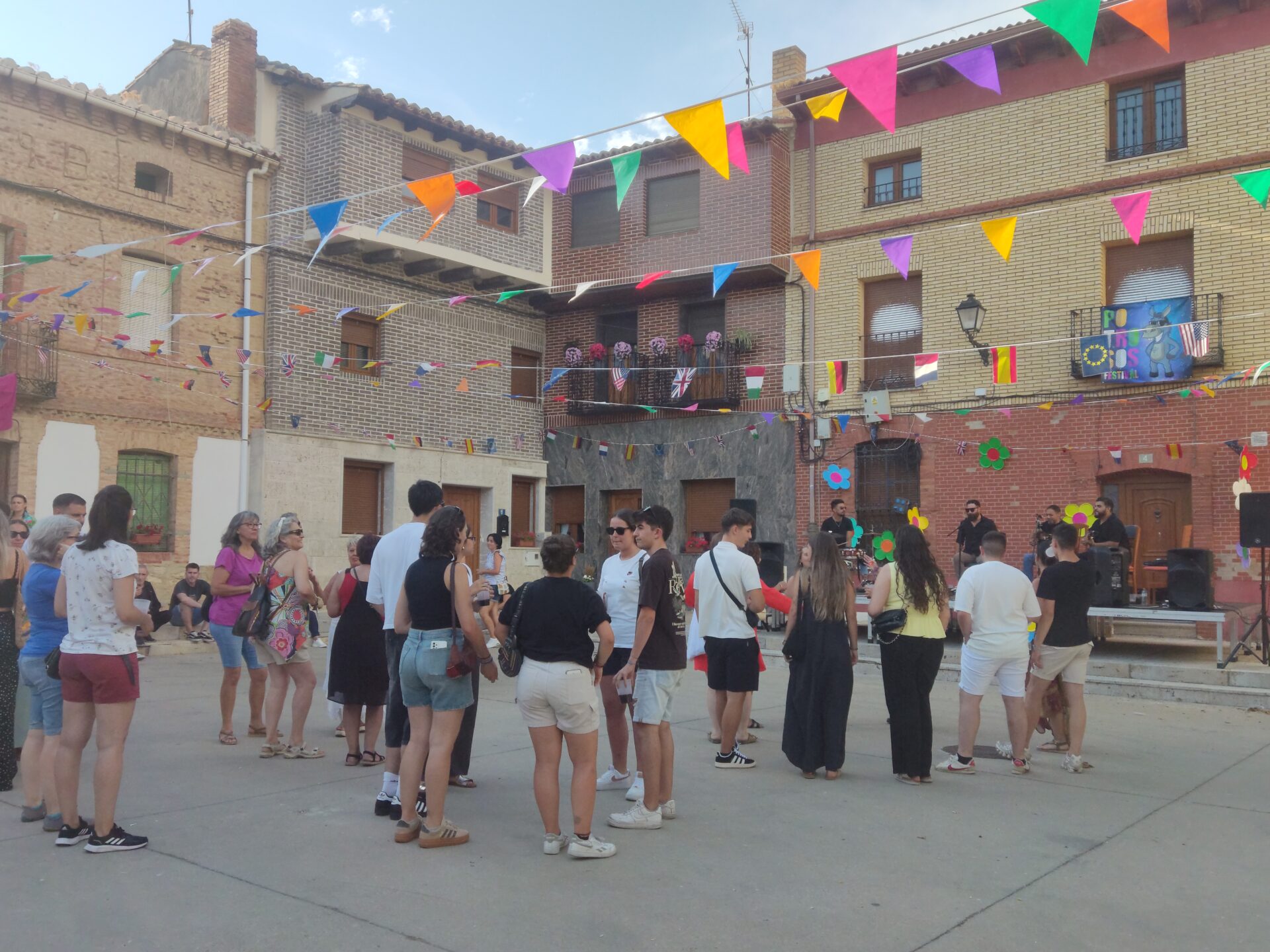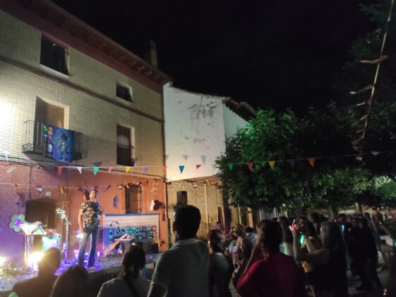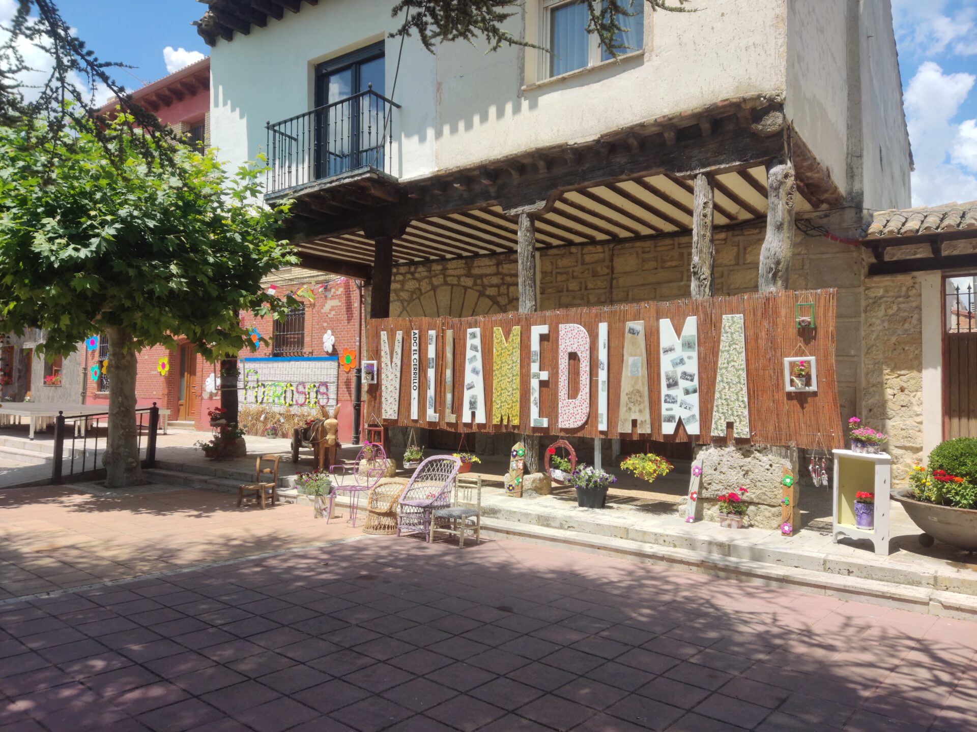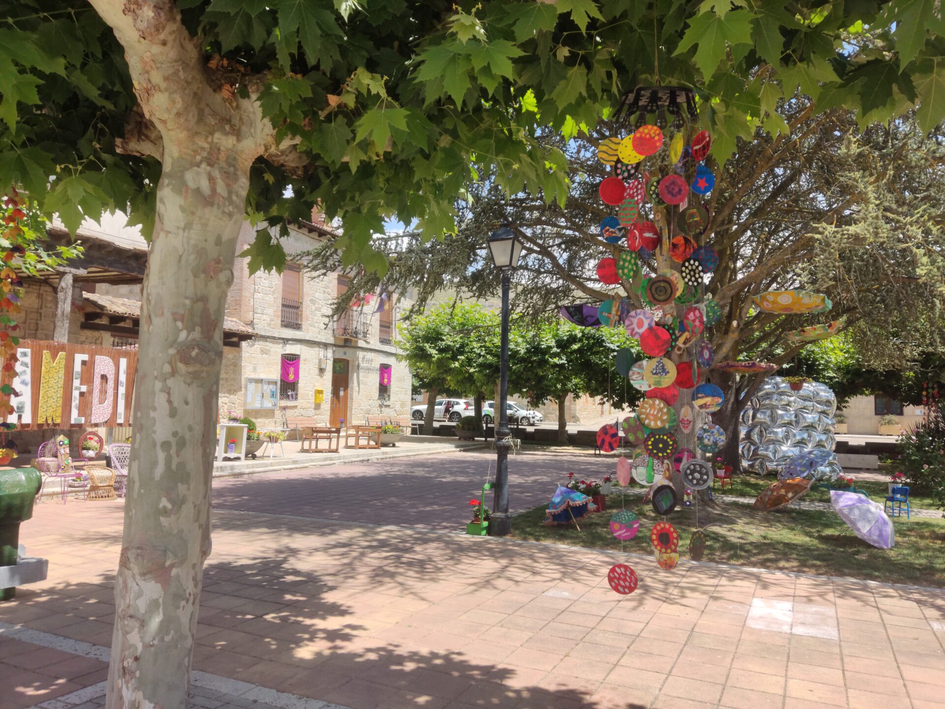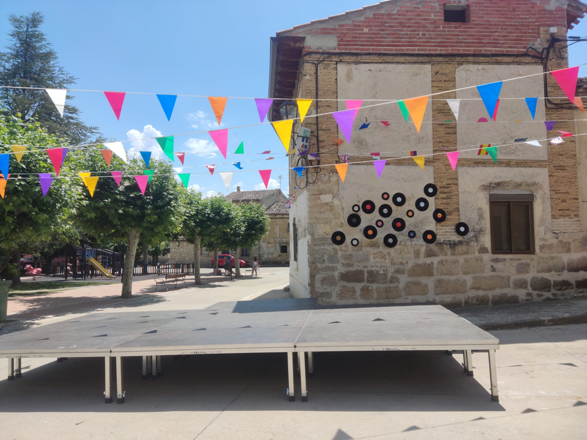 Durante las dos tardes previas a la celebración del festival se han trasladado las decoraciones a un almacén del Ayuntamiento, el cual se encuentra en la propia plaza, y desde allí se ha planificado cómo colocar las decoraciones que precisaban una instalación más compleja. Incluso vecinos que no han estado involucrados en la confección de las manualidades, se han acercado a colaborar con su colocación. Quizá en estas líneas se note de qué pueblo es quien las escribe, pero en Villamediana siempre hay quien arrima el hombro en todas las fiestas a lo largo del año, se hacen bocadillos, se mueven sillas, se reparten perritos al acabar la verbena, se preparan hogueras, chocolate con bizcochos, parrillas, paellas y carne con patatas. Y así los pocos que somos, hacemos mucho.