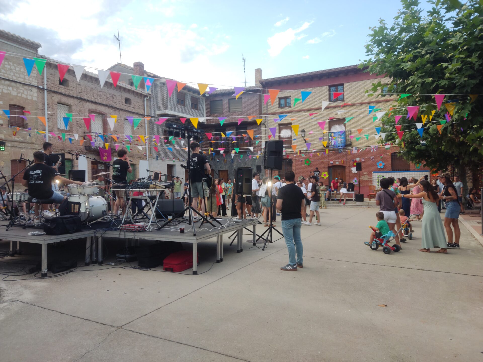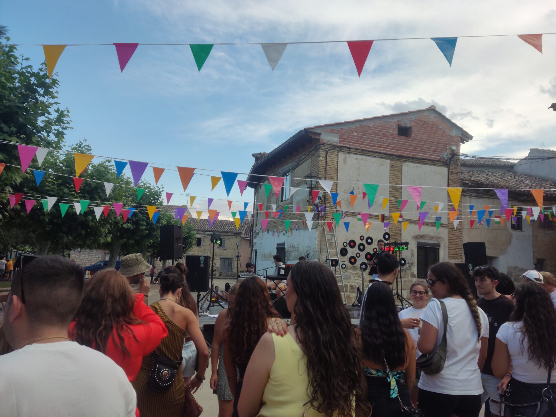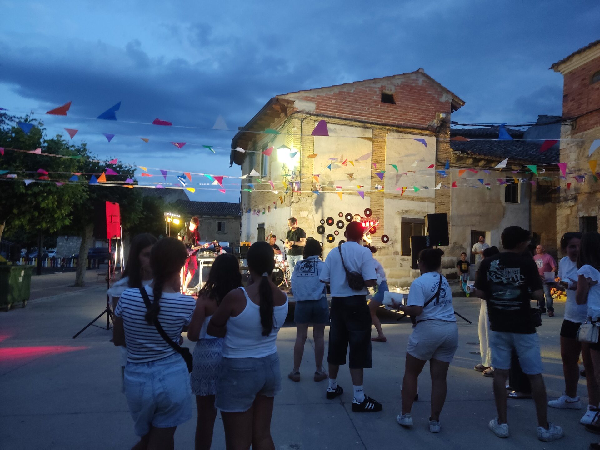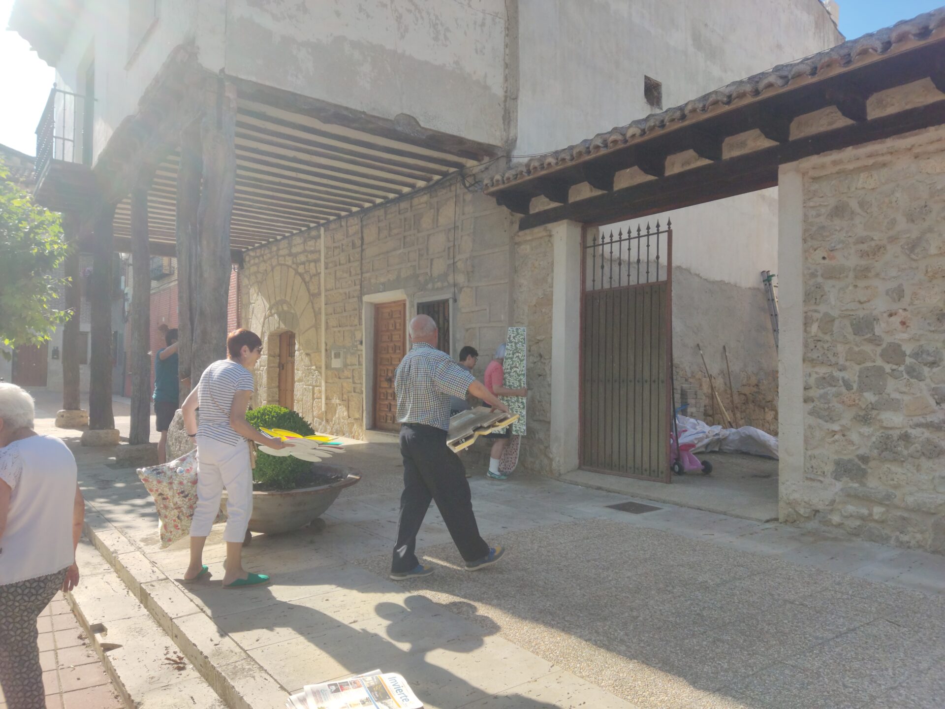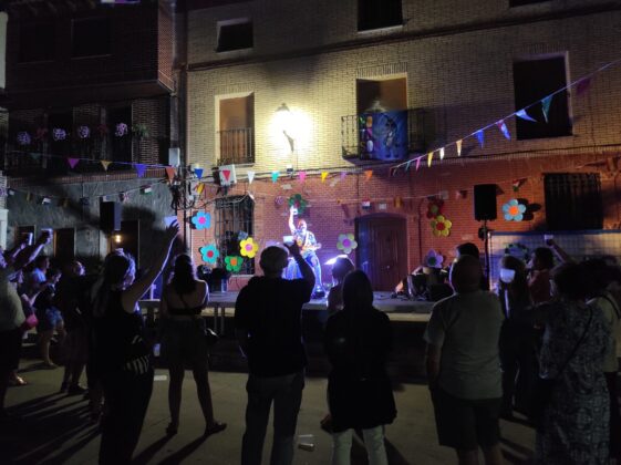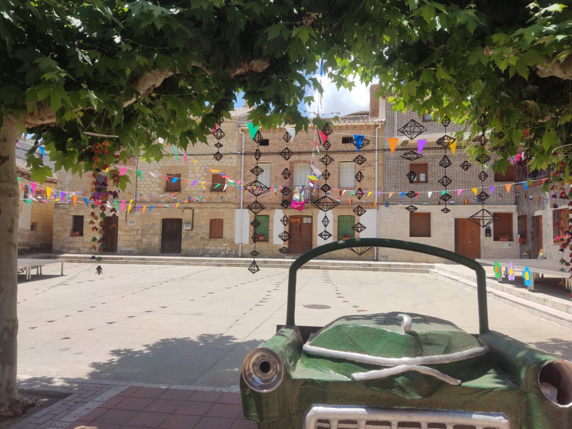Durante las dos tardes previas a la celebración del festival se han trasladado las decoraciones a un almacén del Ayuntamiento, el cual se encuentra en la propia plaza, y desde allí se ha planificado cómo colocar las decoraciones que precisaban una instalación más compleja. Incluso vecinos que no han estado involucrados en la confección de las manualidades, se han acercado a colaborar con su colocación. Quizá en estas líneas se note de qué pueblo es quien las escribe, pero en Villamediana siempre hay quien arrima el hombro en todas las fiestas a lo largo del año, se hacen bocadillos, se mueven sillas, se reparten perritos al acabar la verbena, se preparan hogueras, chocolate con bizcochos, parrillas, paellas y carne con patatas. Y así los pocos que somos, hacemos mucho.