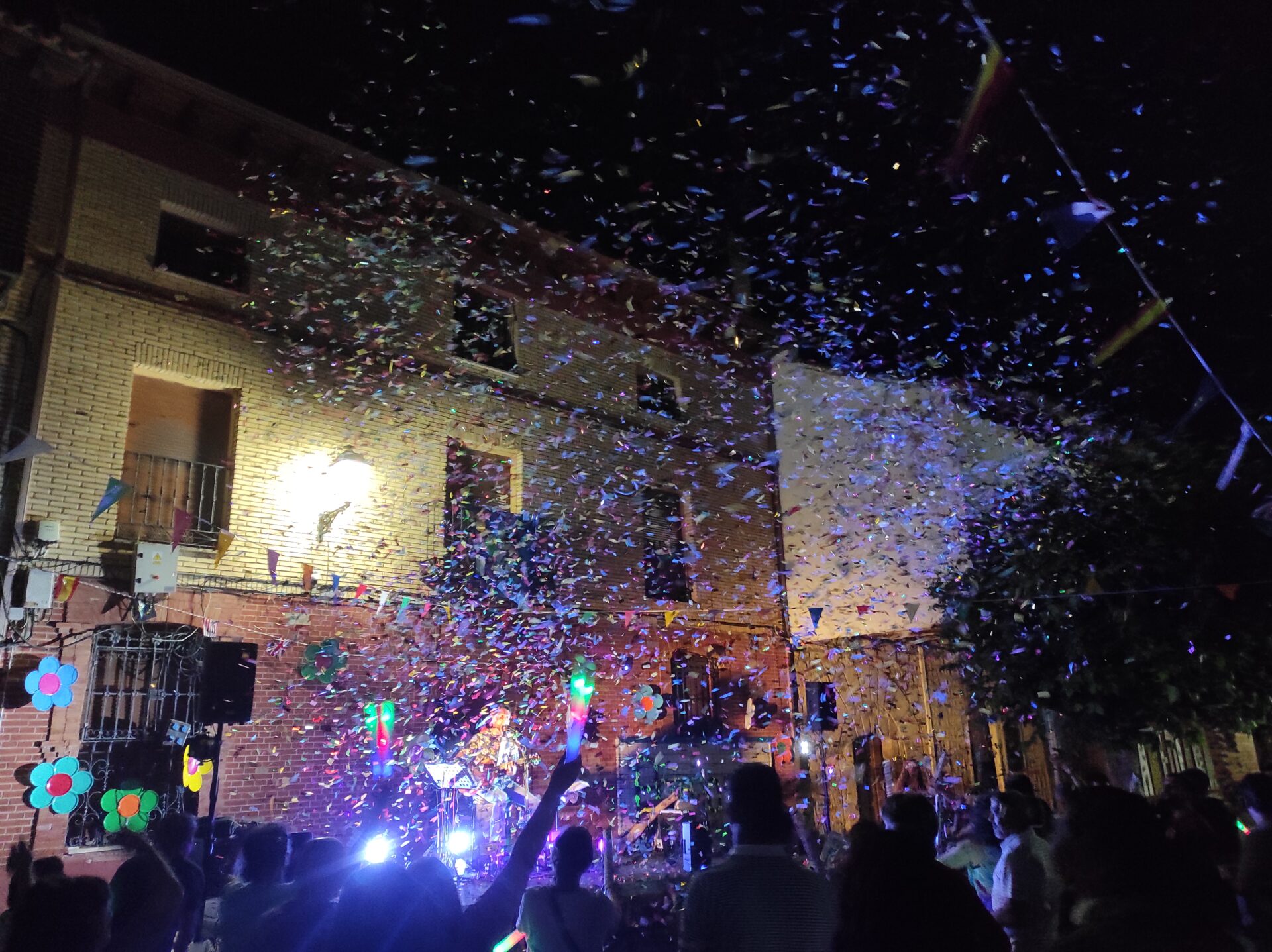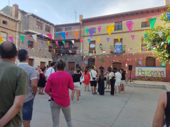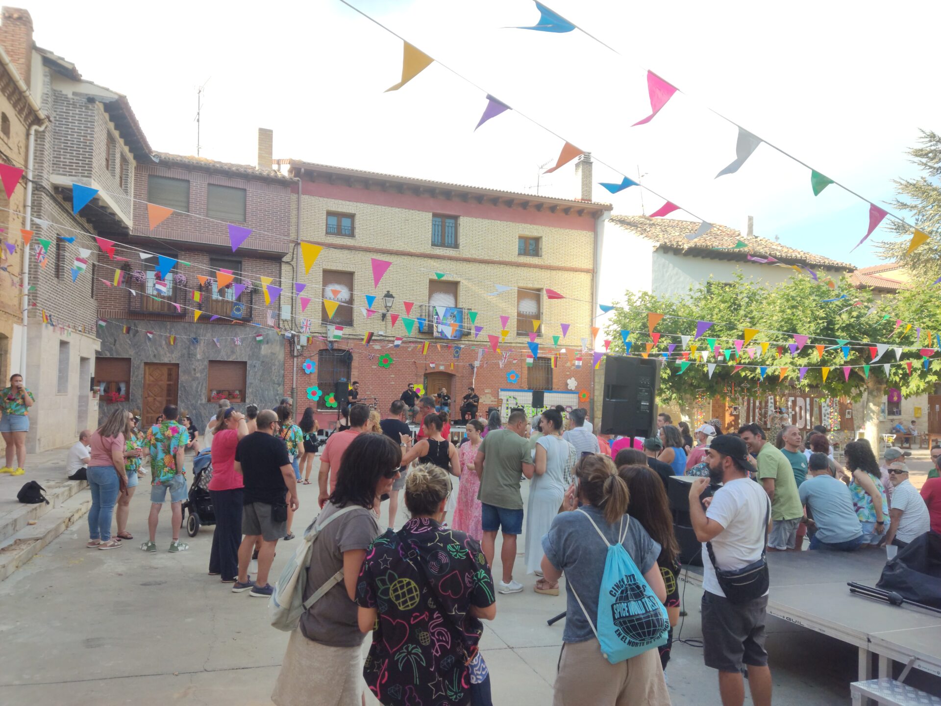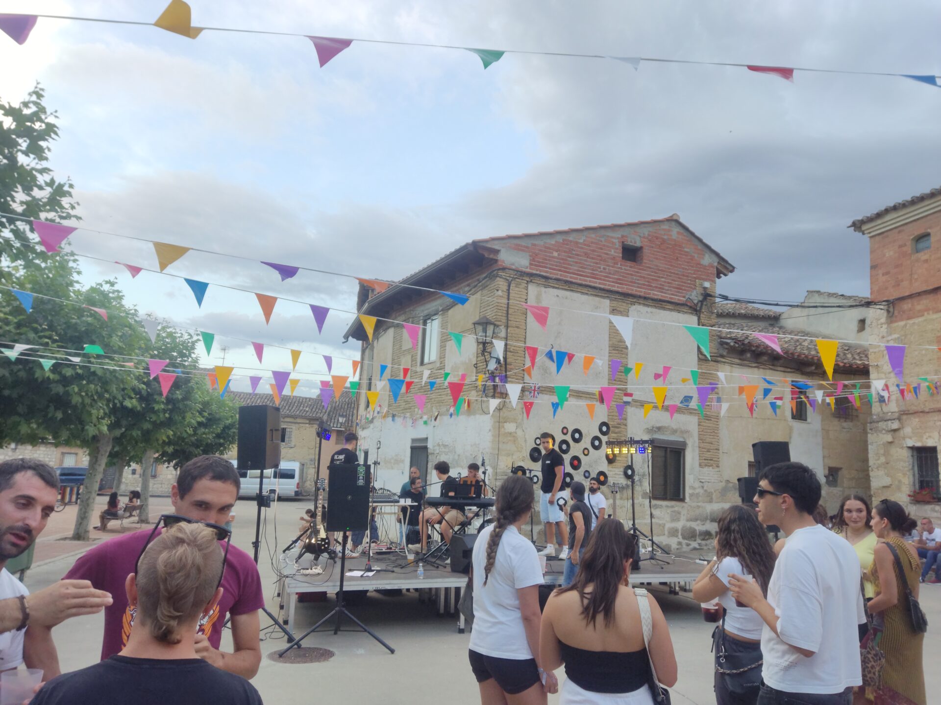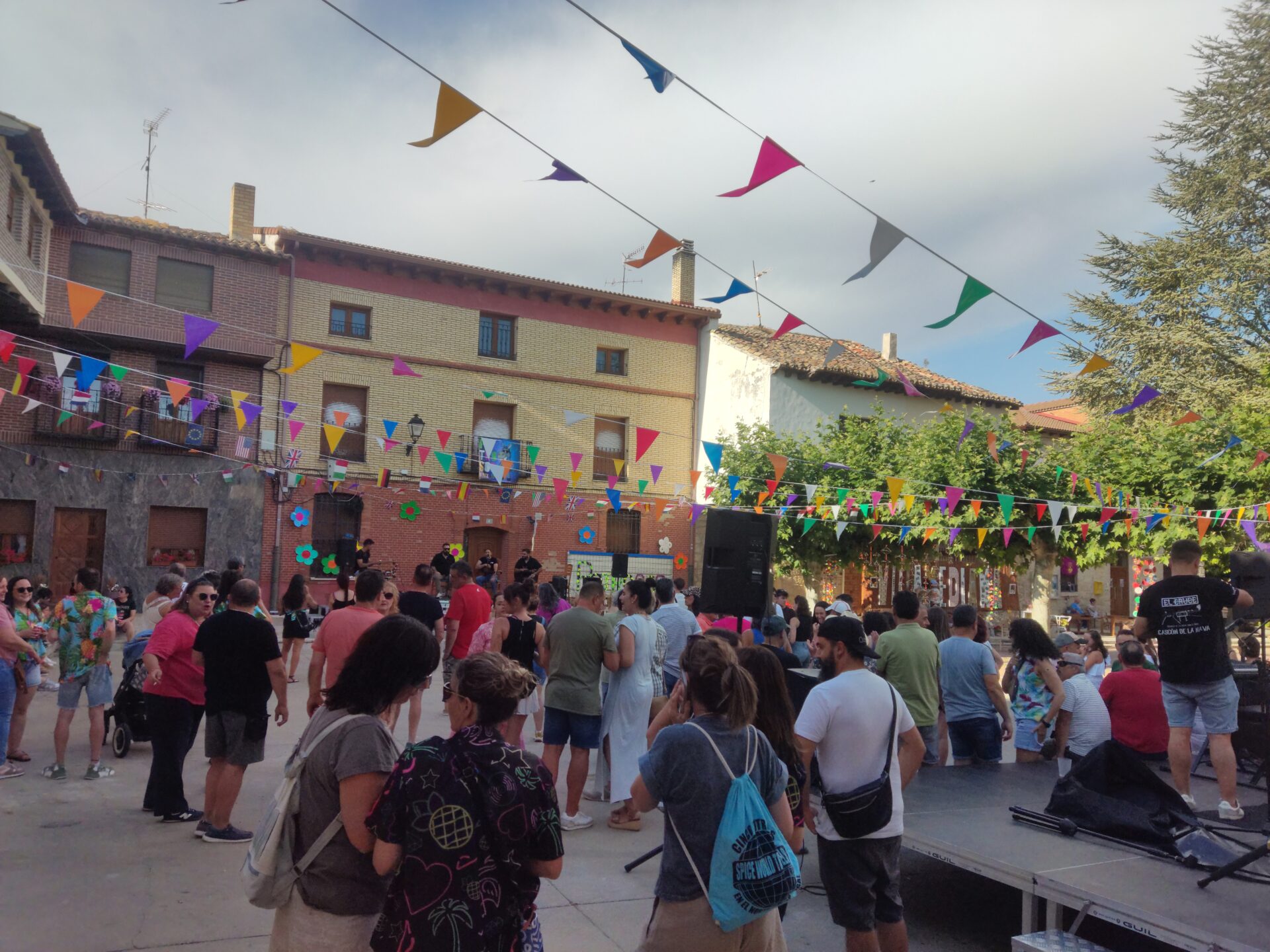 Durante las dos tardes previas a la celebración del festival se han trasladado las decoraciones a un almacén del Ayuntamiento, el cual se encuentra en la propia plaza, y desde allí se ha planificado cómo colocar las decoraciones que precisaban una instalación más compleja. Incluso vecinos que no han estado involucrados en la confección de las manualidades, se han acercado a colaborar con su colocación. Quizá en estas líneas se note de qué pueblo es quien las escribe, pero en Villamediana siempre hay quien arrima el hombro en todas las fiestas a lo largo del año, se hacen bocadillos, se mueven sillas, se reparten perritos al acabar la verbena, se preparan hogueras, chocolate con bizcochos, parrillas, paellas y carne con patatas. Y así los pocos que somos, hacemos mucho.