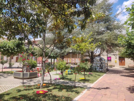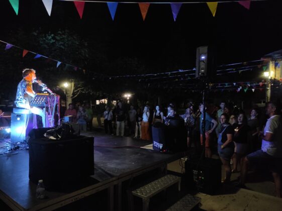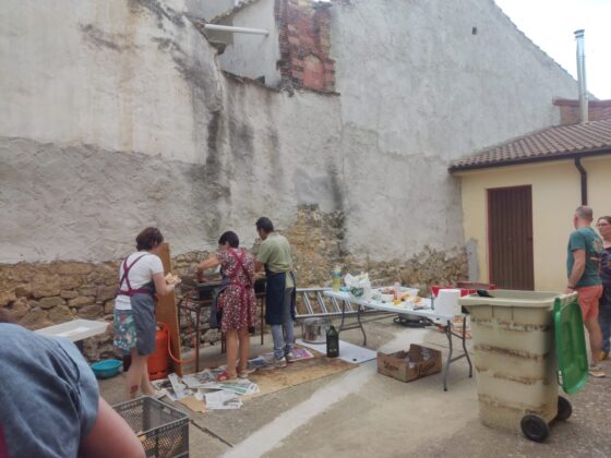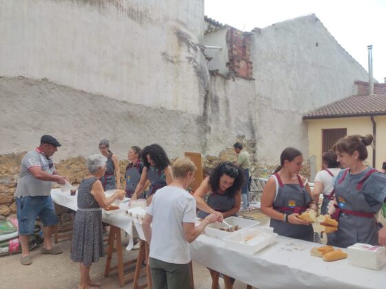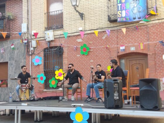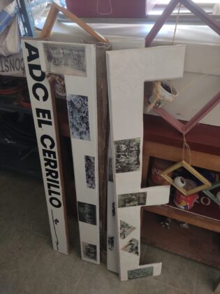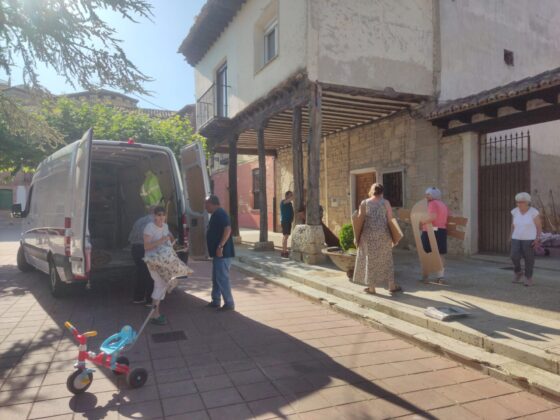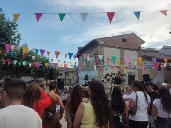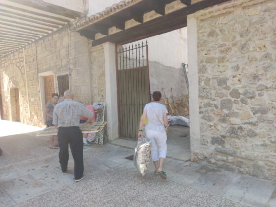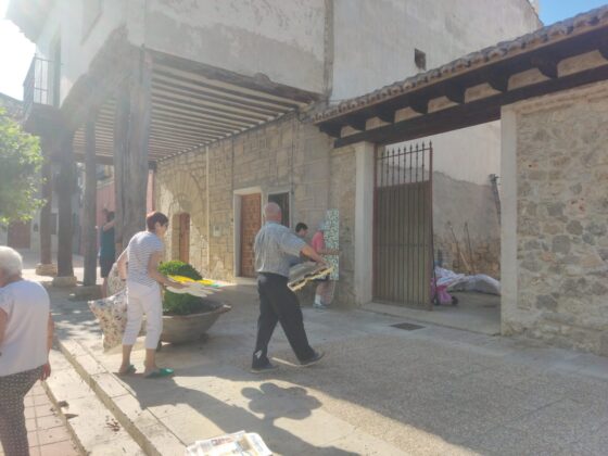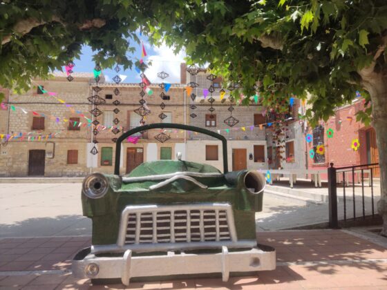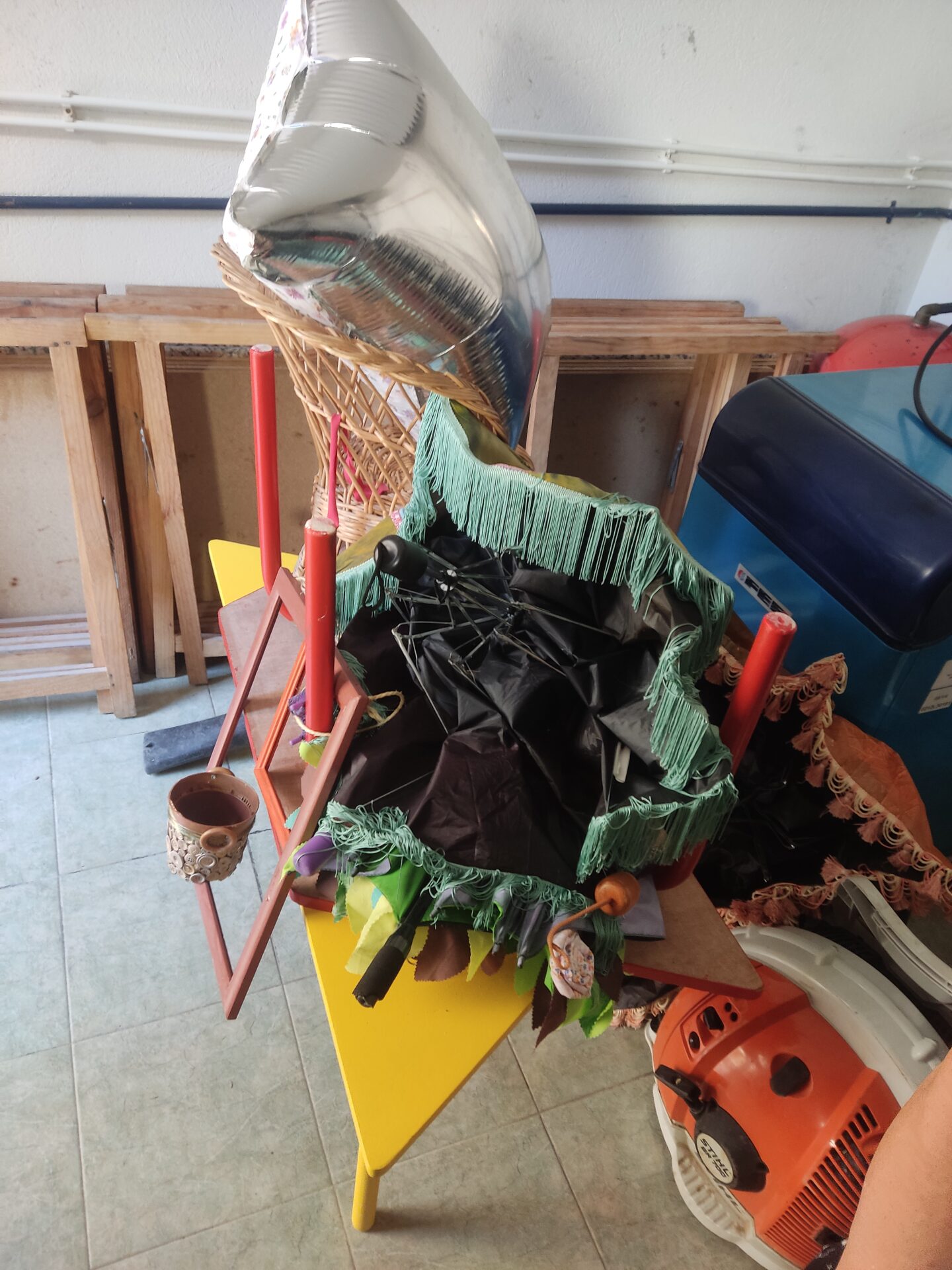 El programa del festival Potrosos ’25, abre con una cita en la plaza para colocar las decoraciones. Pero el festival Potrosos no comienza ahí. Hay personas que llevan meses trabajando en las decoraciones, algunas se han reunido en el antiguo Teleclub, ahora sede de la Asociación Deportiva y Cultural El Cerrillo. Allí se han realizado numerosas manualidades, por parte de los miembros de la asociación. Así las ideas de Cristina han ido tomando forma, gracias a ella y a toda la gente que se arremanga y trabaja para que todos podamos disfrutar de la fiesta. Pero no ha sido el único lugar desde el que se ha construido este festival. Juan Cruz, ha pasado 3 meses trabajando en su taller, cortando las letras de madera que han servido como epicentro de las decoraciones y restaurando pupitres de varias épocas en las que existía escuela en el pueblo.