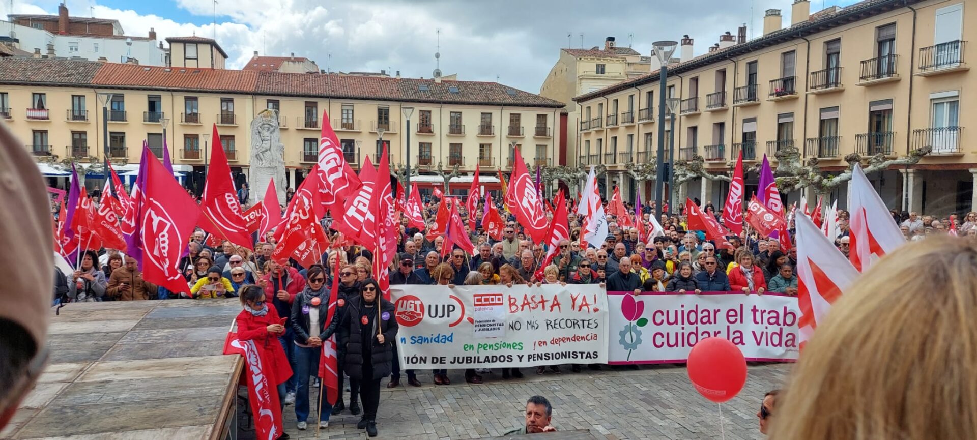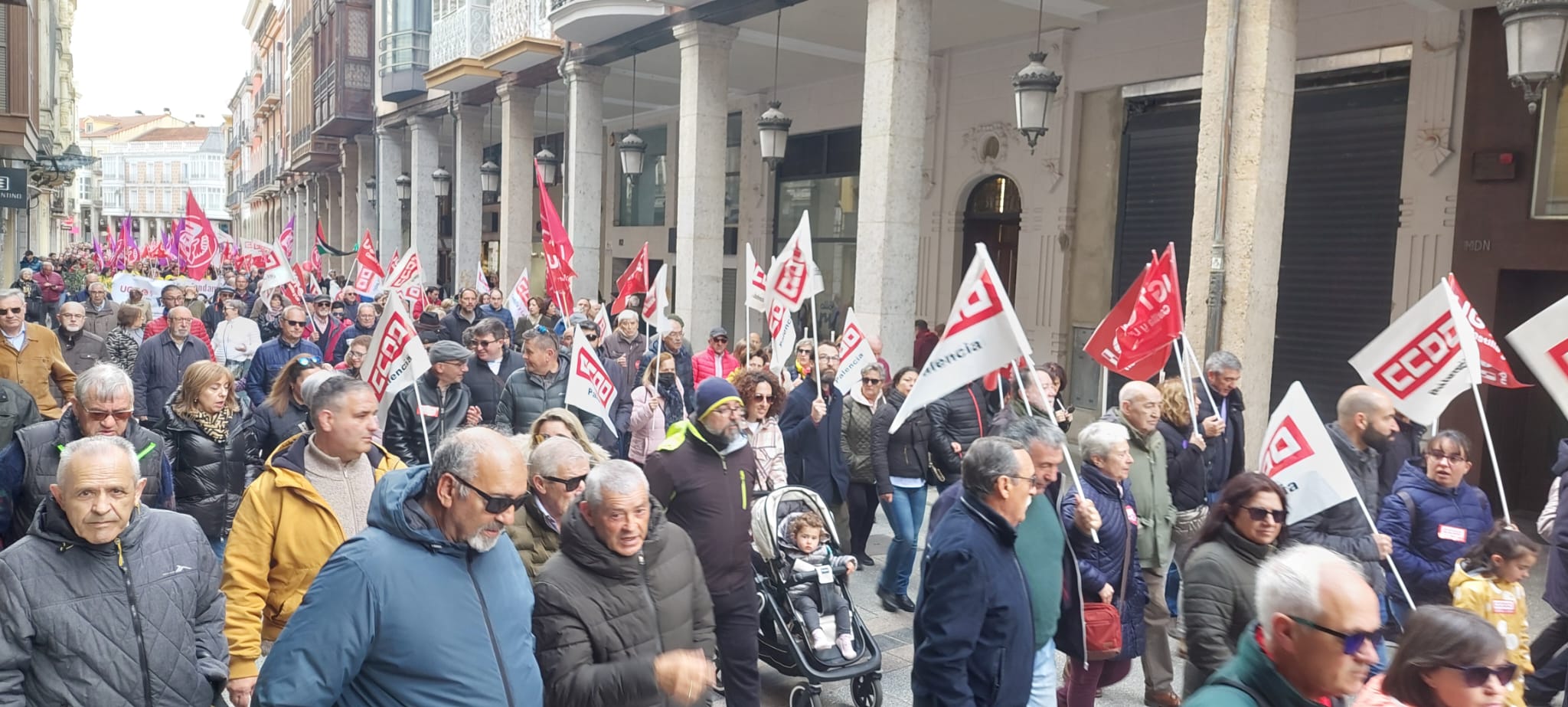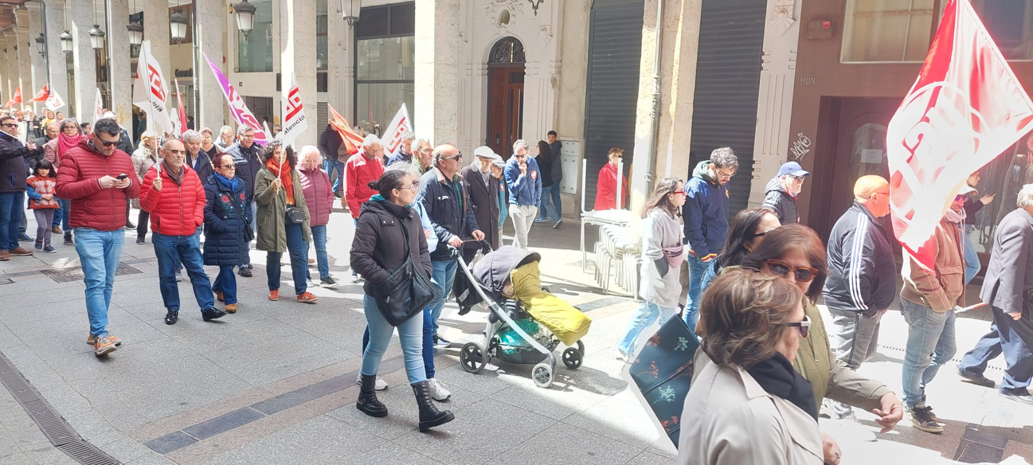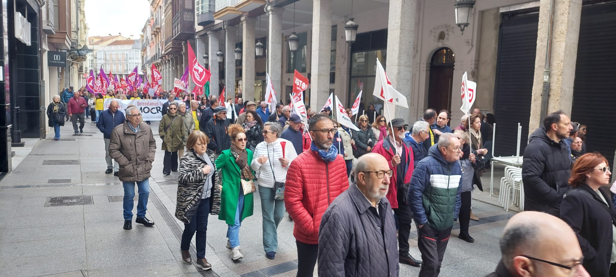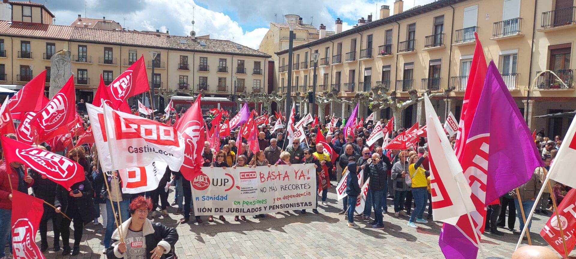 Un recorrido que ha finalizado en la Plaza Mayor donde ha tenido lugar la lectura del manifiesto por parte de los máximos representantes de CCOO y UGT en Palencia.