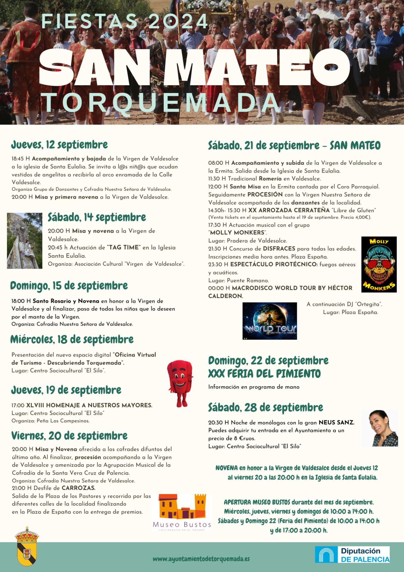 - 18:00 h: Santo Rosario y Novena en honor a la Virgen de Valdesalce; y al finalizar, paso de todos los niños que lo deseen por el manto de la Virgen.