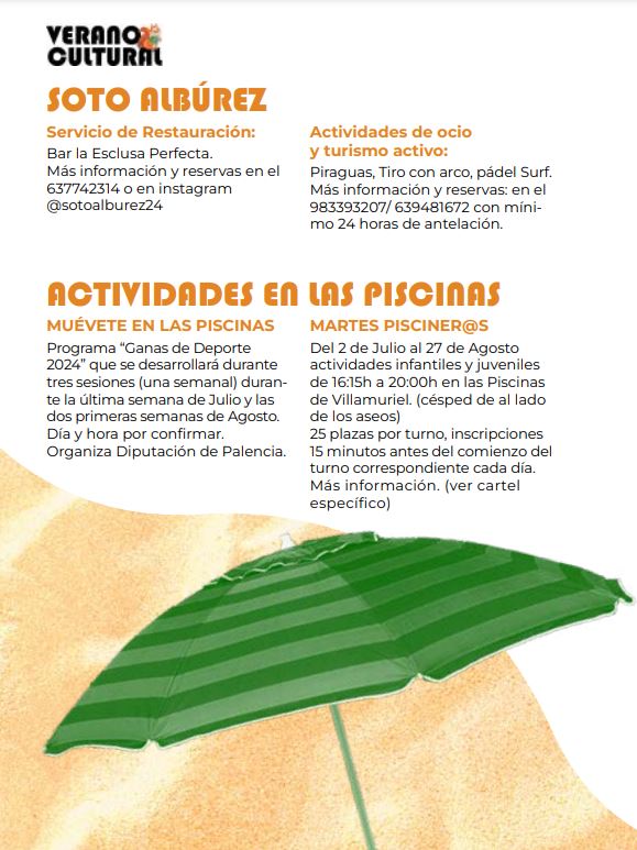 - 17:00h: Actividad “Muévete en las piscinas” dentro del programa “Ganas de Deporte 2024”, organizado por la Diputación provincial de Palencia.