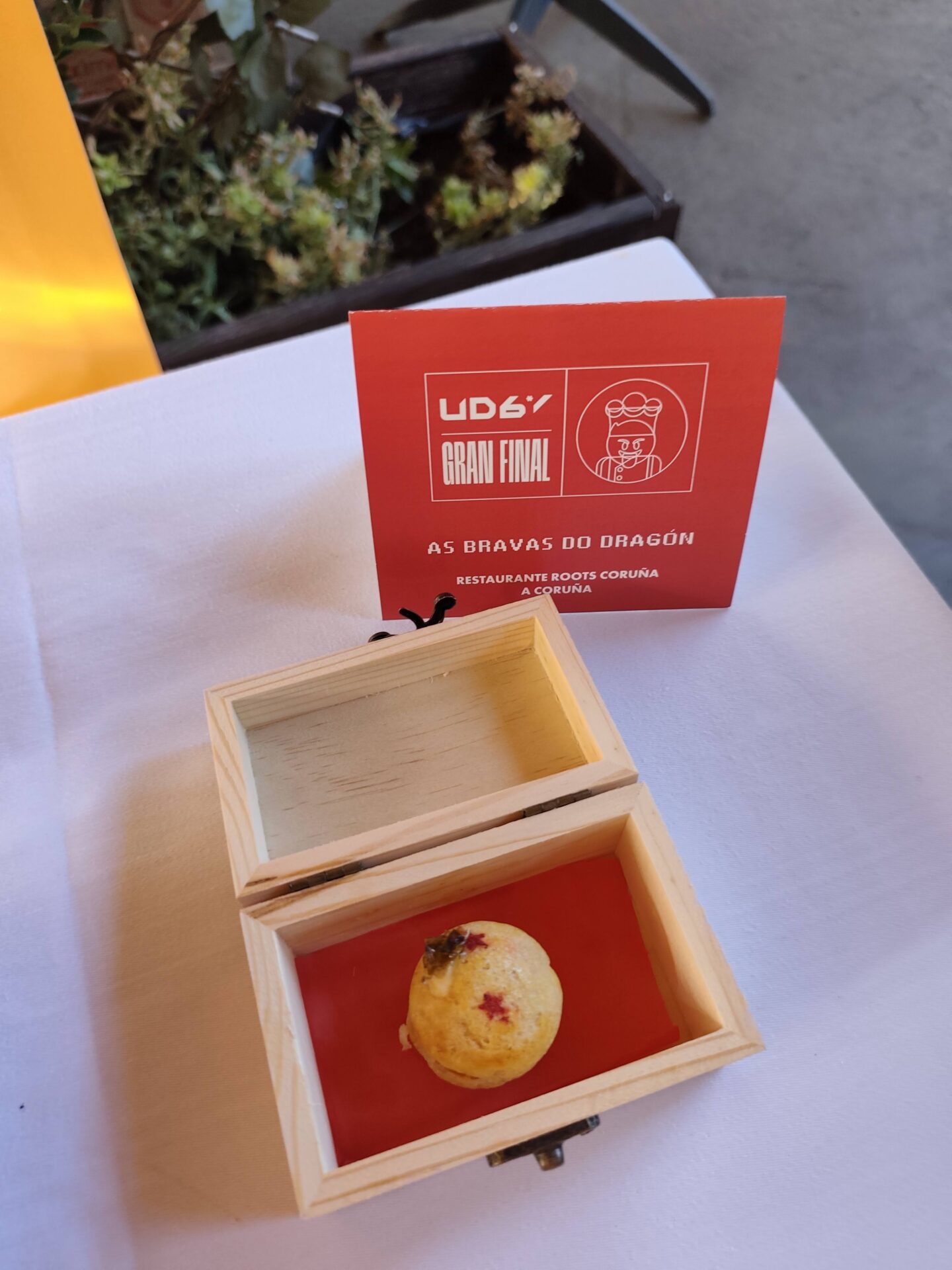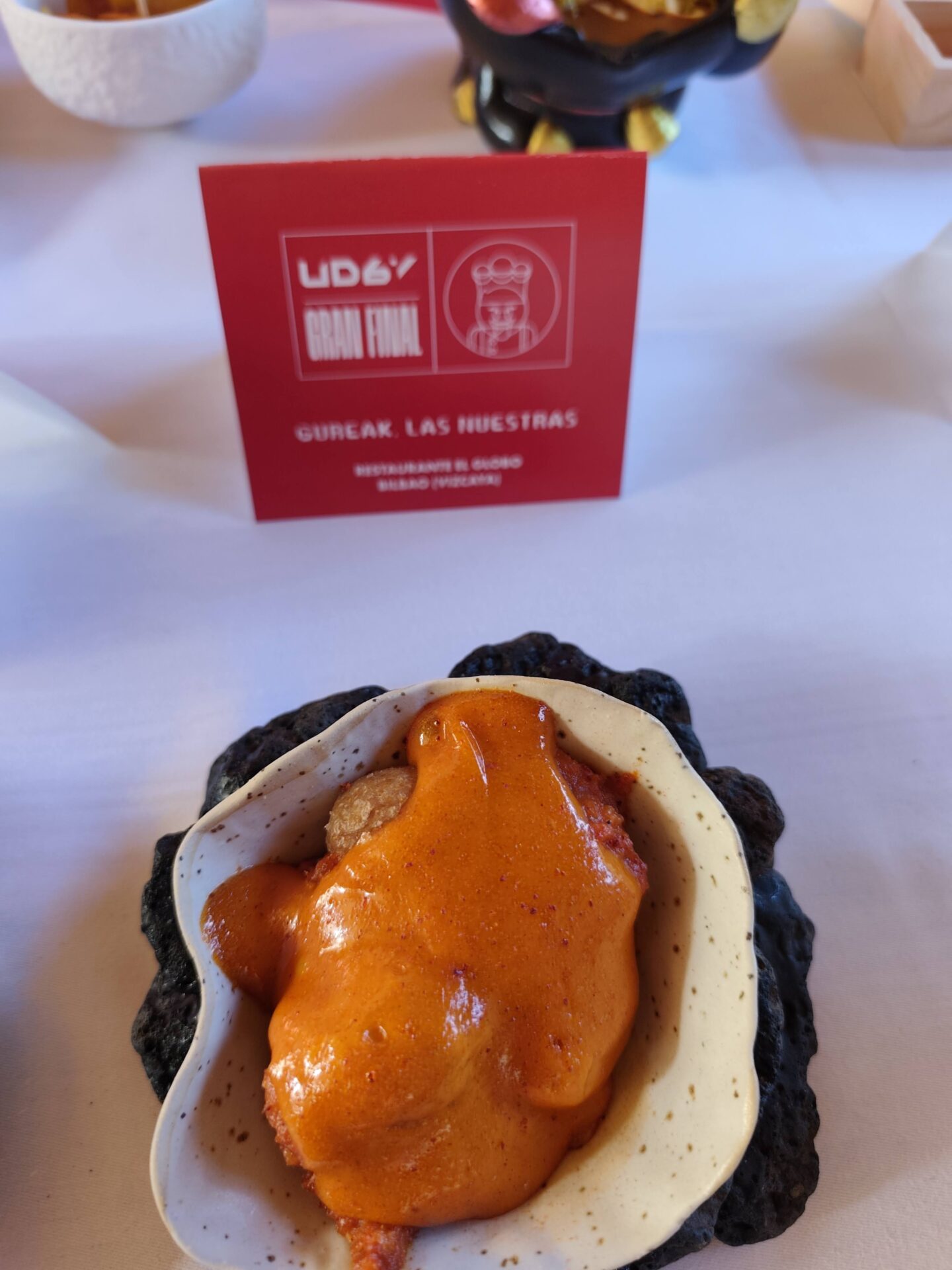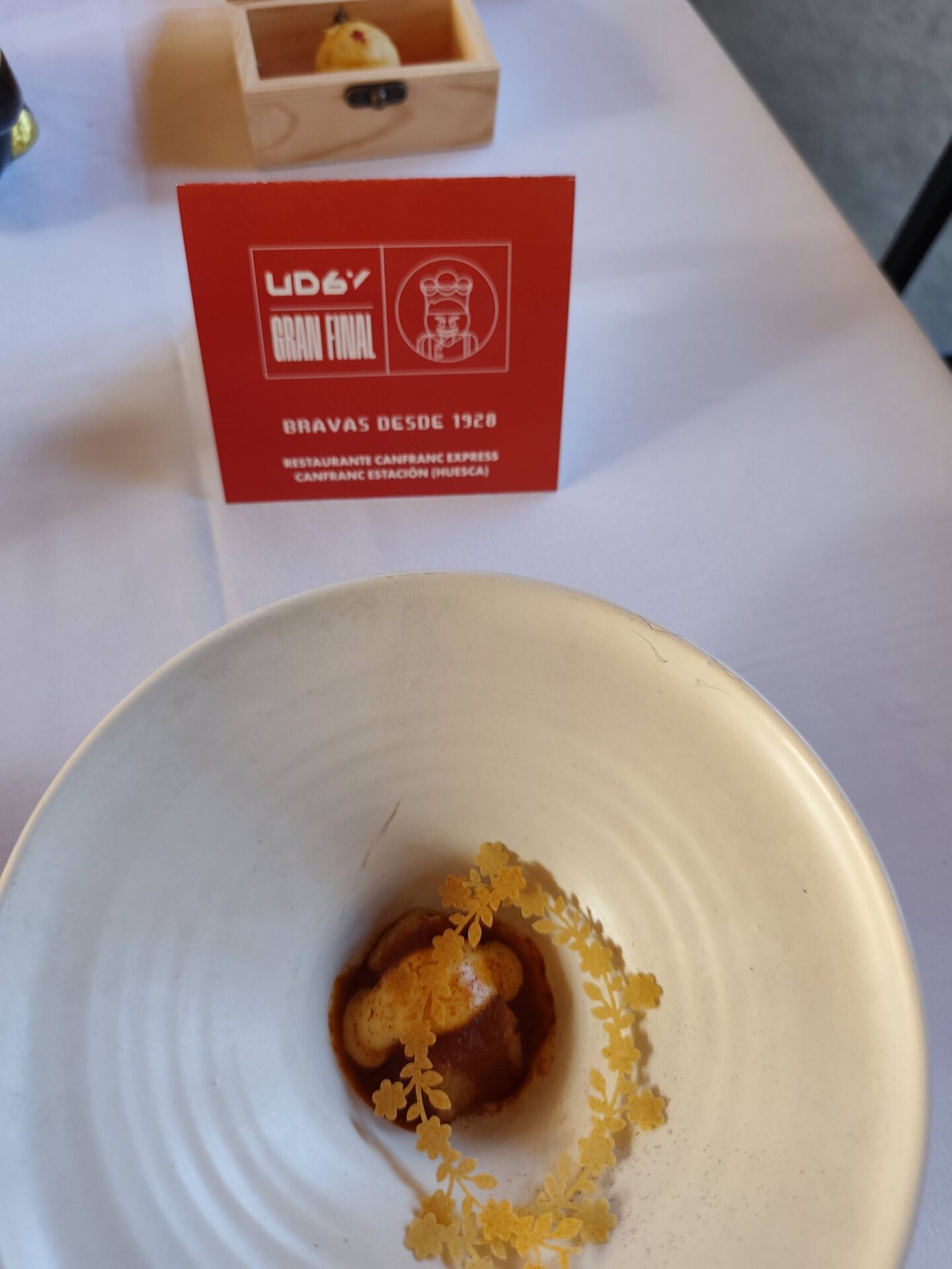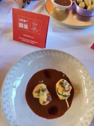 El segundo premio voló hasta lo más profundo de los Pirineos. Hasta la Estación de Canfranc, donde Ariel Munguía, de Canfranc Express (1 estrella Michelin) propuso su Bravas desde 1928 (en referencia a la entrada en funcionamiento de la línea ferroviaria de Canfranc y Francia.