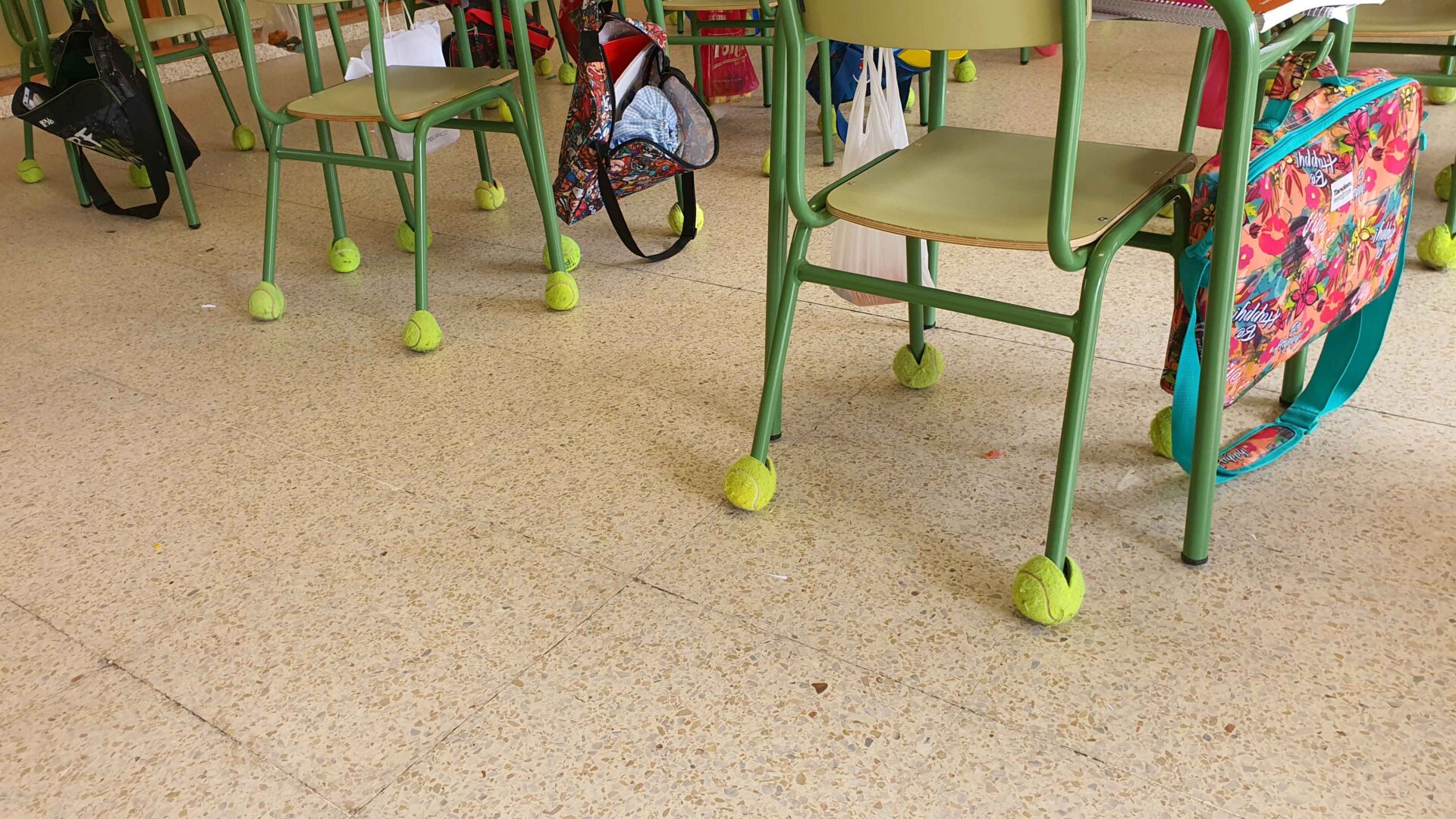 Por iniciativa de una de las familias del centro, el centro educativo se puso en contacto con la academia para solicitar el envío de alrededor de 2.000 pelotas de tenis al colegio. La finalidad de este pedido es colocarlas en las sillas del alumnado y reducir el ruido que se produce habitualmente en las aulas.