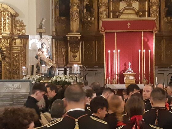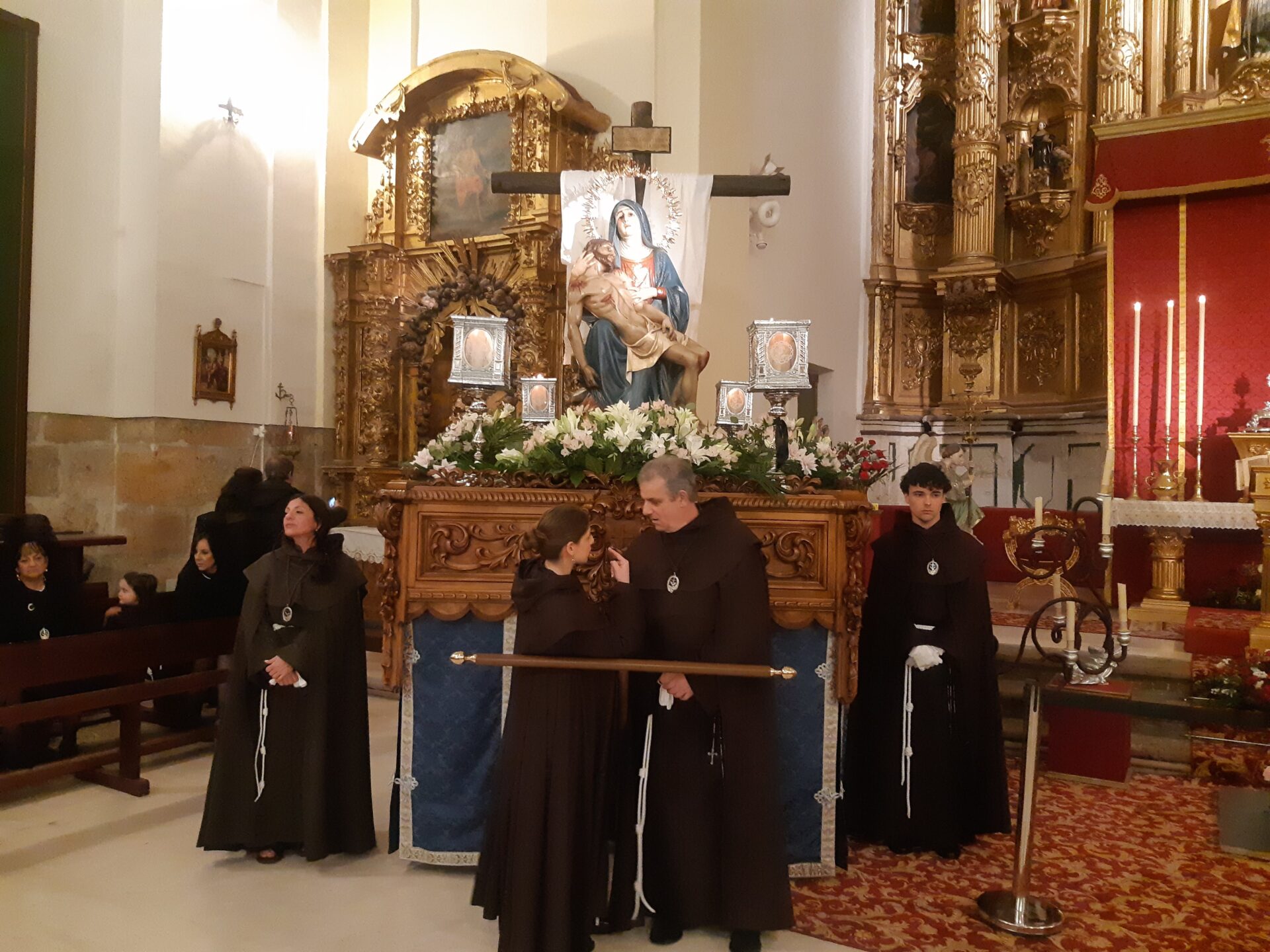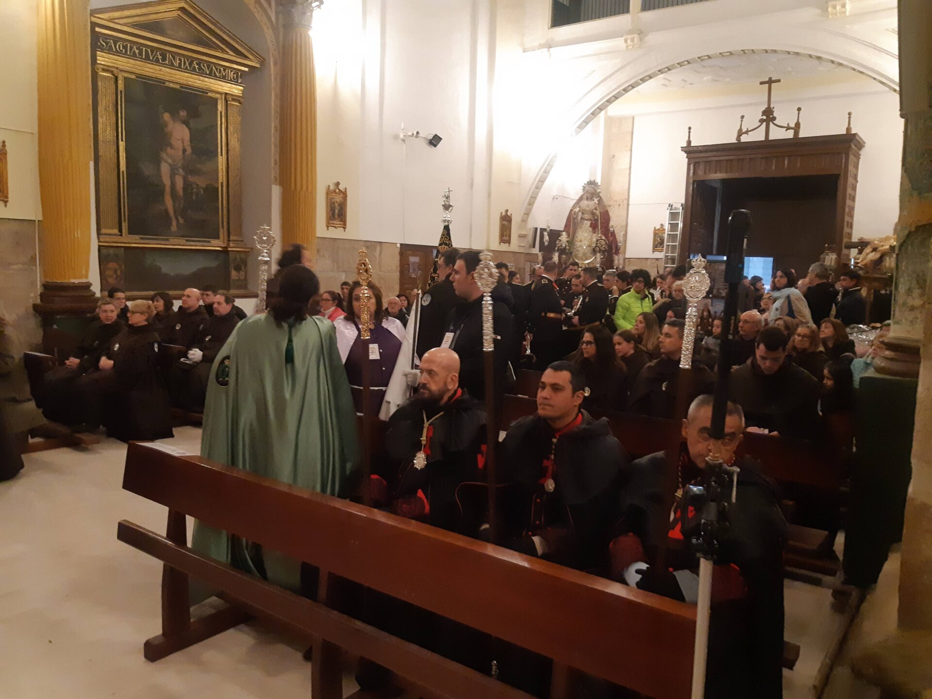 Así que el acto de la Corona Franciscana, el llamado rosario de siete misterios, se ha tenido que celebrar y rezar en el pequeño templo de la Calle Mayor, en vez de repartir los actos por diferentes puntos del centro de la ciudad.