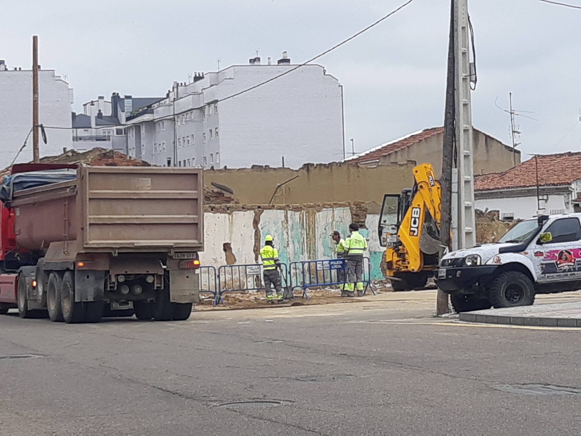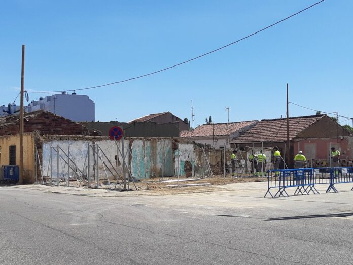 El plazo inicial dado por el Ayuntamiento para despejar la zona, de dos semanas, se ha prolongado un poco más, pero ya en las últimas jornadas los operarios de una contrata han echado a abajo lo que quedaba de los números 63 y 65 de la calle San Antonio ayudados con una mixta.