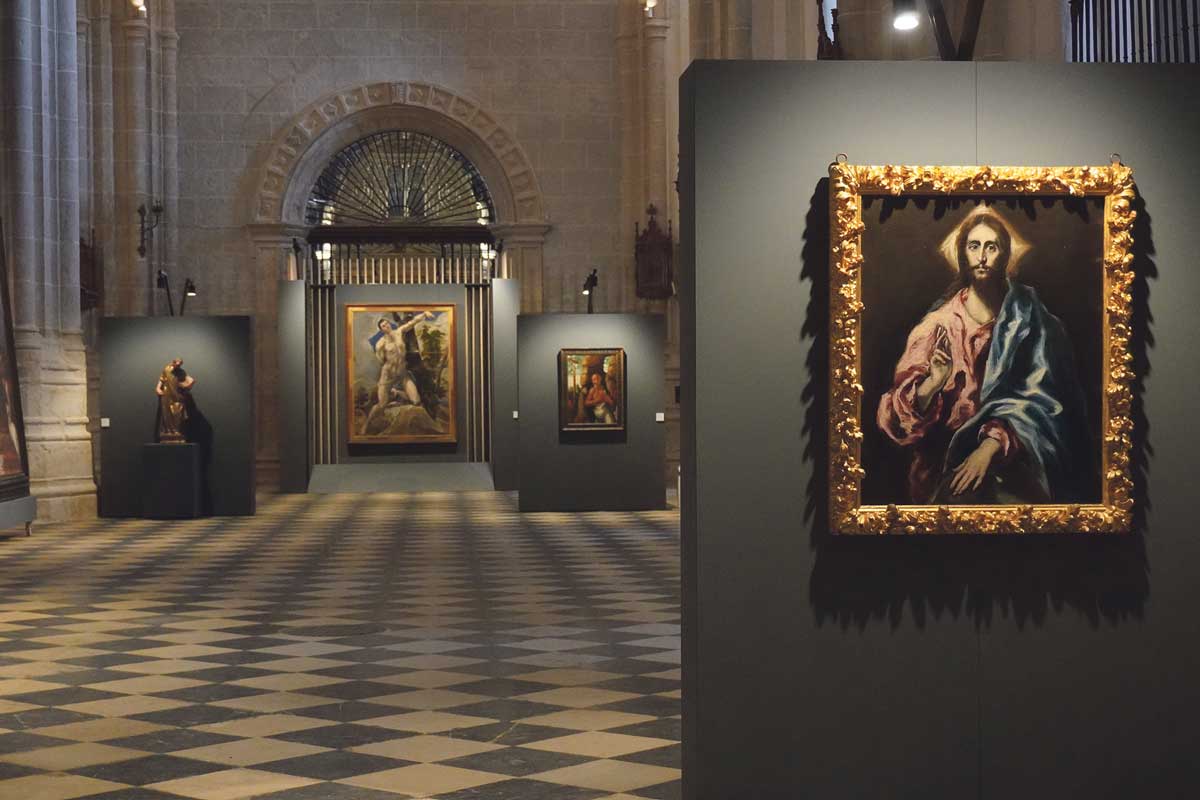 El lado del evangelio se ha reservado para la pintura con una tasada selección de obras en la que sin duda destacan los dos «grecos» que participan en la exposición. El primero, un Cristo redentor procedente de la catedral de Toledo en el que está presente toda la maestría del pintor cretense, con sus vibrantes colores y profunda expresividad, tanto en el rostro como en las manos. No inferior, se muestra en un lugar destacado el San Sebastián, joya habitualmente expuesta en el Museo catedralicio.