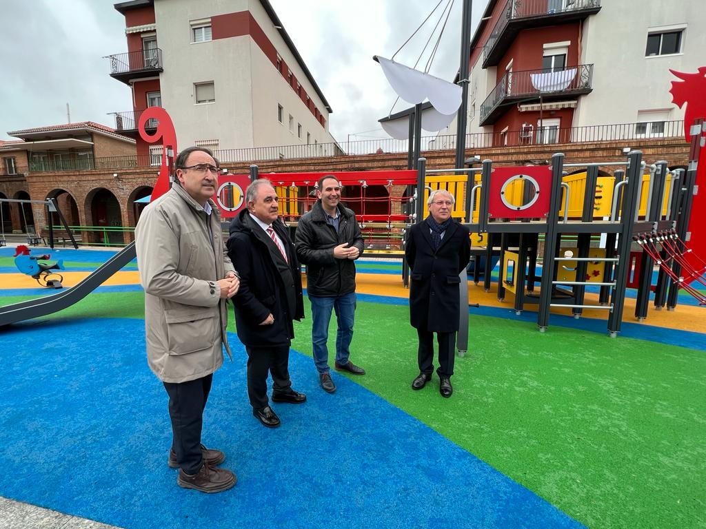 El Alcalde de Palencia, Mario Simón, el Primer Teniente de Alcalde, Alfonso Polanco, el concejal de Medio Ambiente, Juan Antonio Marcos y el delegado Territorial de la Junta en Palencia, José Antonio Rubio Mielgo, han inaugurado esta mañana los juegos infantiles de la Plaza de El Carmen, una actuación financiada gracias al Fondo de Cooperación Local de la Junta de Castilla y León por una cuantía de 205.000 euros.