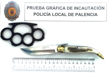 Agentes de la Policía Local, en colaboración con funcionarios de Policía Nacional, requisaron ayer una navaja y un puño americano a un hombre que intimidaba a los clientes que se encontraban sentados en una terraza de una establecimiento hostelero, ubicado en el Paseo del Salón de la capital palentina, según el parte de sucesos.