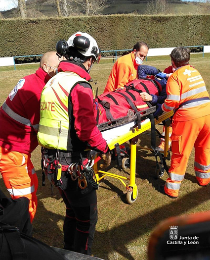 En la llamada realizada a la sala de operaciones del Centro de Emergencias 1-1-2 Castilla y León se explicó que el herido no podía continuar caminando a causa de la lesión, y que no era posible para un vehículo todoterreno acceder hasta el lugar en el que se encontraba la persona accidentada.